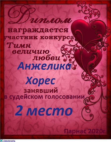 Второе место по итогам конкурса " Любовь – возвышенное чувство", судейское голосование. Поздравляем с прекрасной победой!