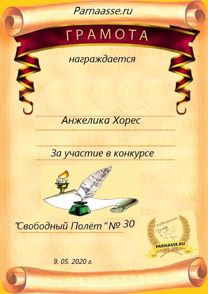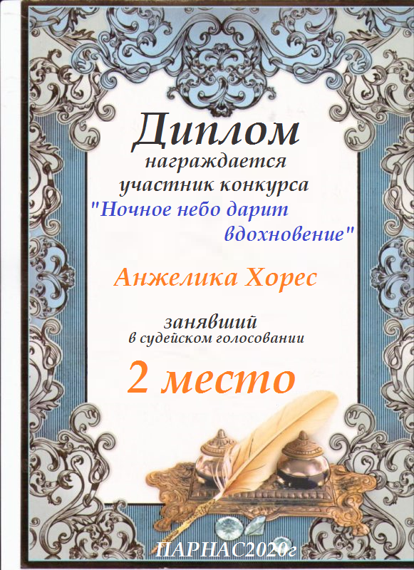 Второе место по итогам конкурса " Вдохновение – росчерк пера", судейское голосование. Поздравляем с прекрасной победой!