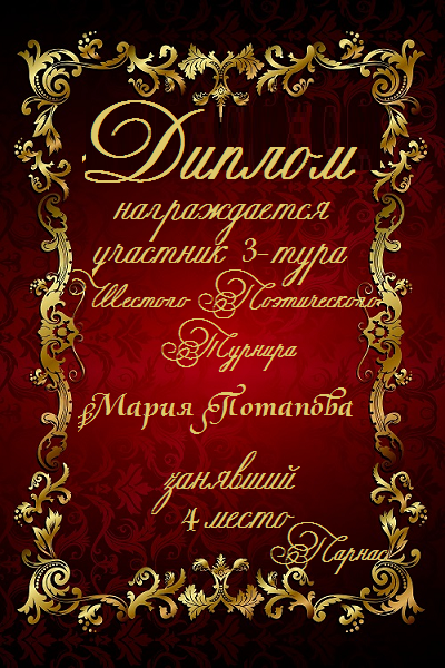 Четвёртое место в судейском голосовании по итогам 3-го тура Шестого поэтического Турнира