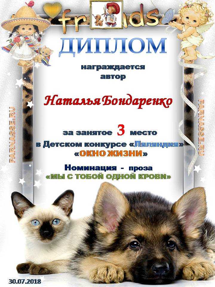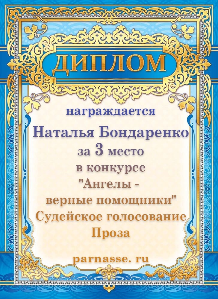 3 место в конкурсе "Ангелы -верные помощники". Судейское голосование. Проза
