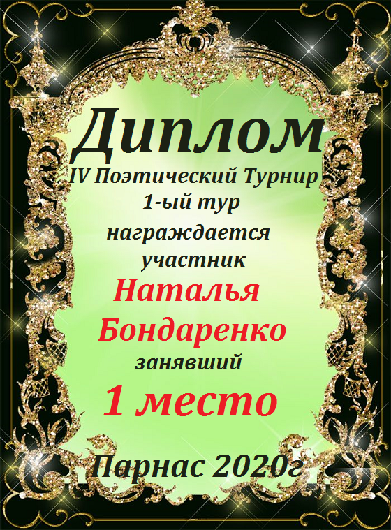 Первое место в 1-м туре Четвёртого Поэтического Турнира «Я посвящаю матери стихи». Поздравляем!