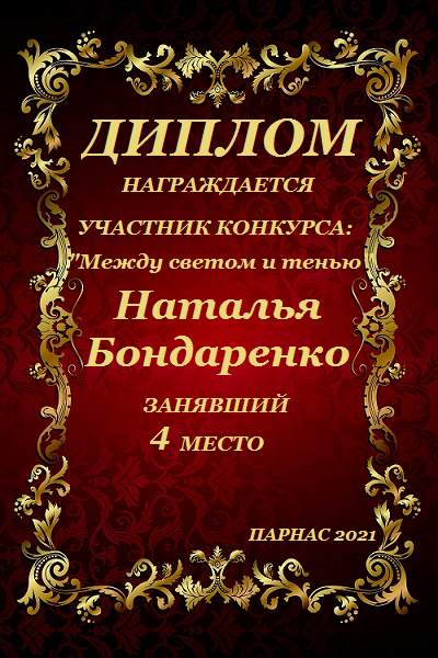 Четвёртое место в 6-м туре Четвёртого Поэтического Турнира «Между светом и тенью», за произведение «Вечный вопрос». Поздравляем!