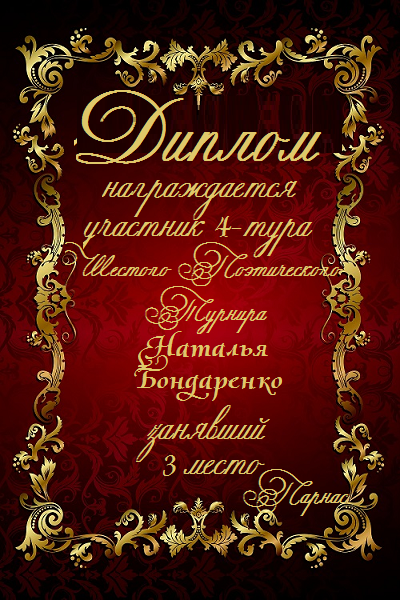 Третье место в судейском голосовании по итогам 4-го тура Шестого Поэтического Турнира