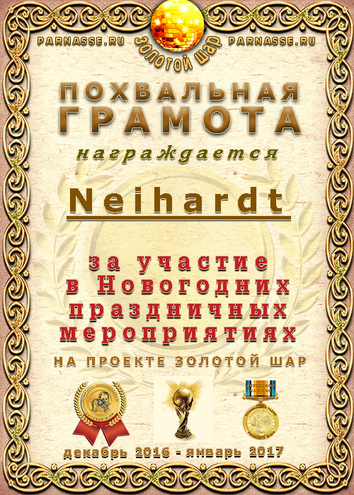 ![]() Золотой Кубок "Гордость и Надежда Парнаса"