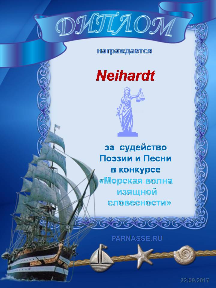 Благодарим Вас за объективное судейство песенной номинации "На музыкальной волне" - Песни о Море; конкурса "Морская волна изящной словесности".