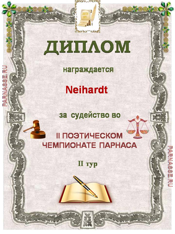 ![]() Золотой кубок "Судья II Поэтического Чемпионата Парнаса"