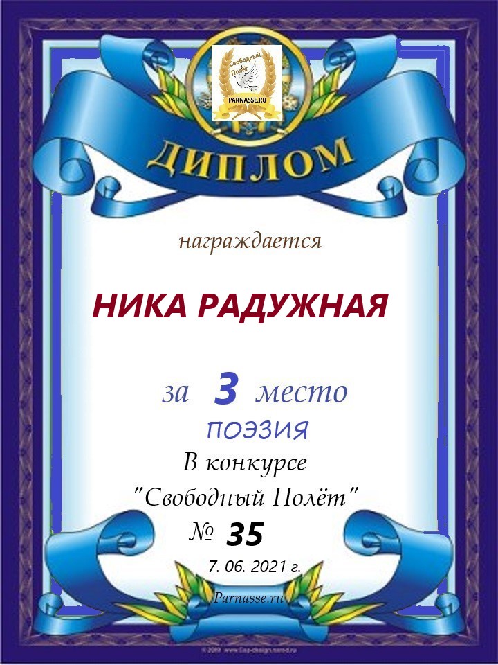 за 3 место в конкурсе "Свободный Полёт" № 35 ПОЭЗИЯ