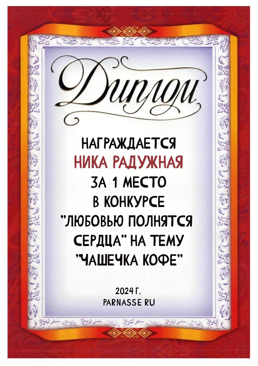 1 место в конкурсе "Любовью полнятся сердца" на тему "Чашечка кофе". Поздравляем!