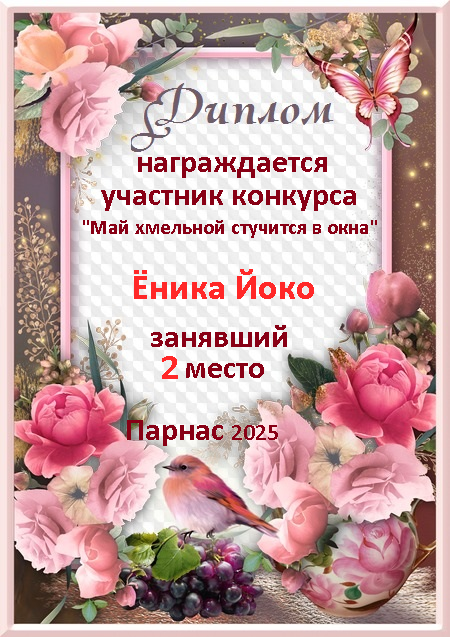 2 место место в судейском голосовании по итогам конкурса "Май хмельной стучится в окна"