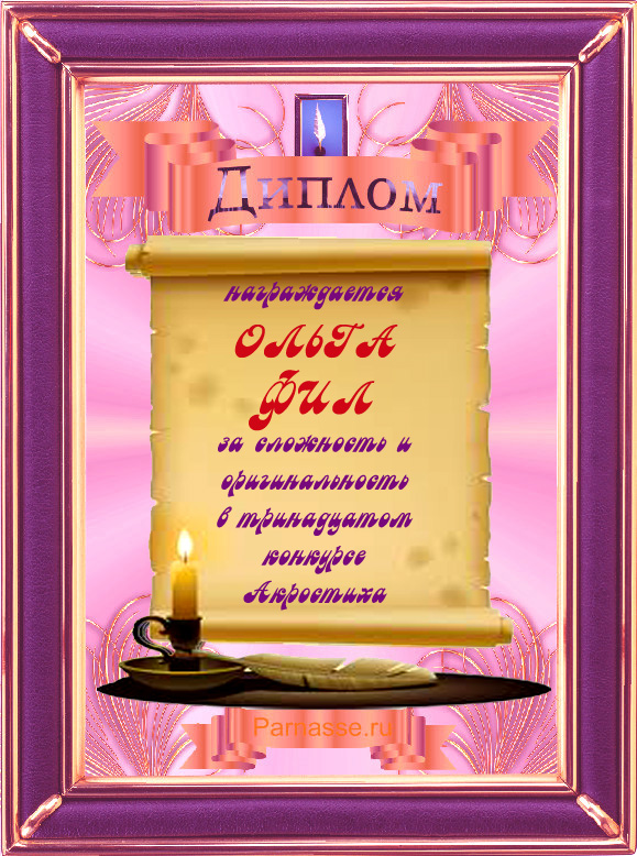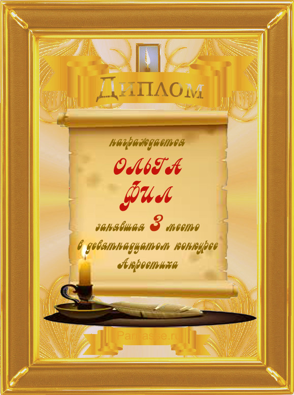 Диплом за победу в 19 конкурсе АКРОСТИХА в дополнительной номинации "За сложность и оригинальность"! ПОЗДРАВЛЯЮ!