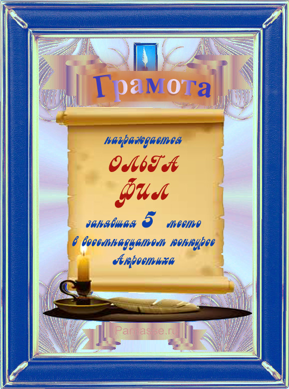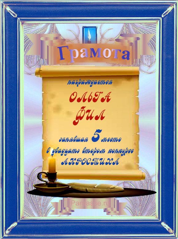 Диплом победителю в конкурсах Акростиха в связи с пятилетием конкурса Акростиха!