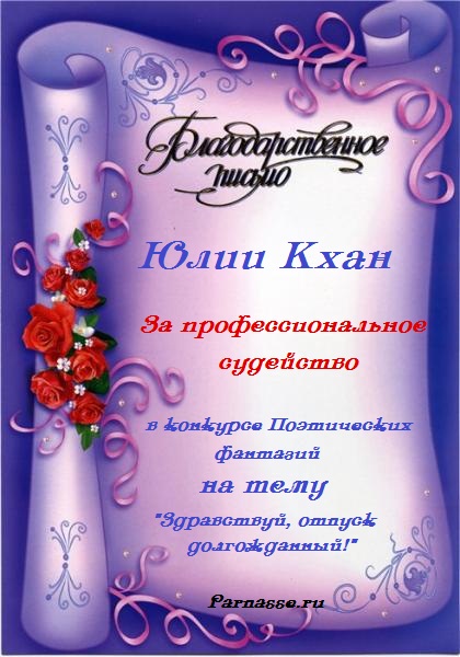 За профессиональное судейство юмористического литературного конкурса "Продлим жизнь смехом!". Спасибо!