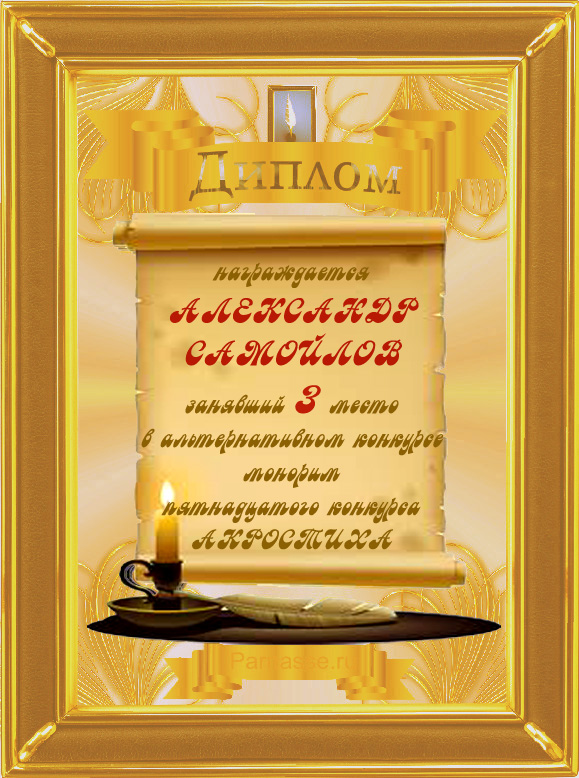 Диплом за 3 место в 15 конкурсе АКРОСТИХА (Альтернатива)!