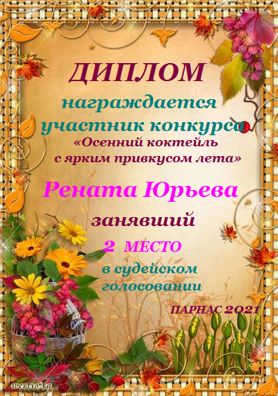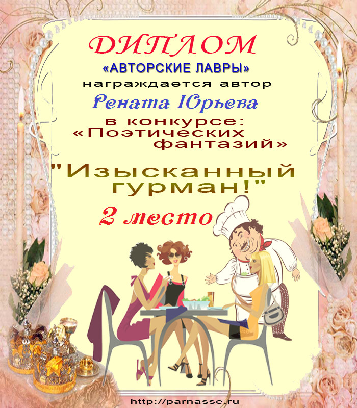Победителю конкурса "Изысканный гурман!"в номинации "Авторские лавры"2 место.