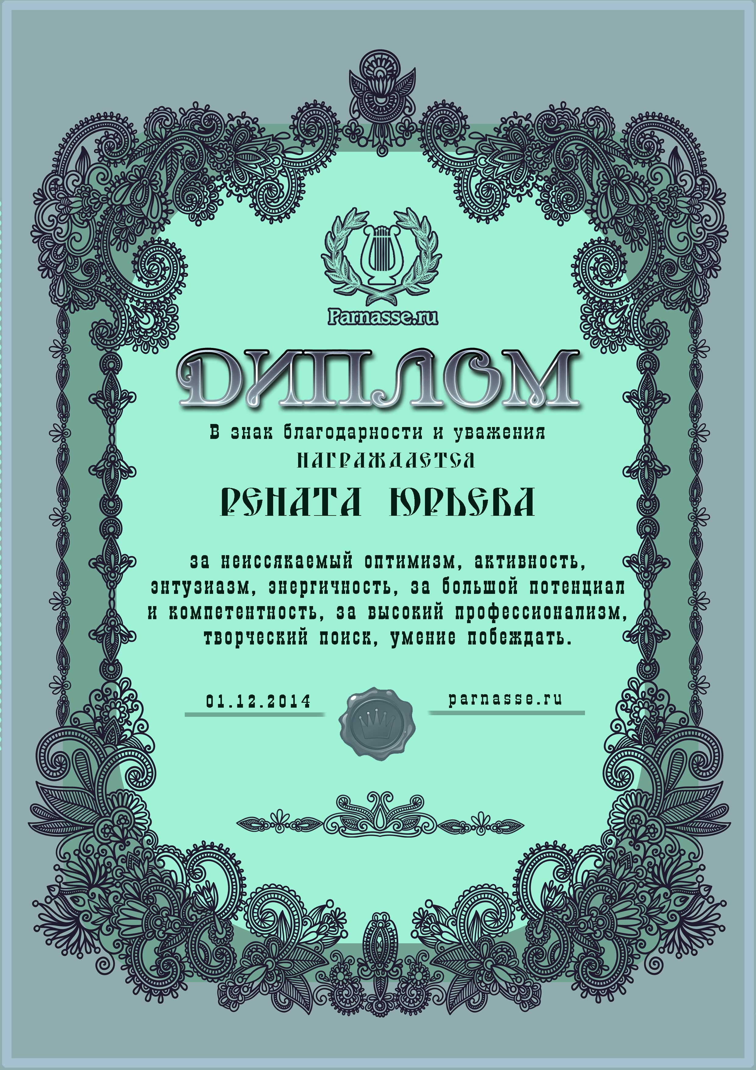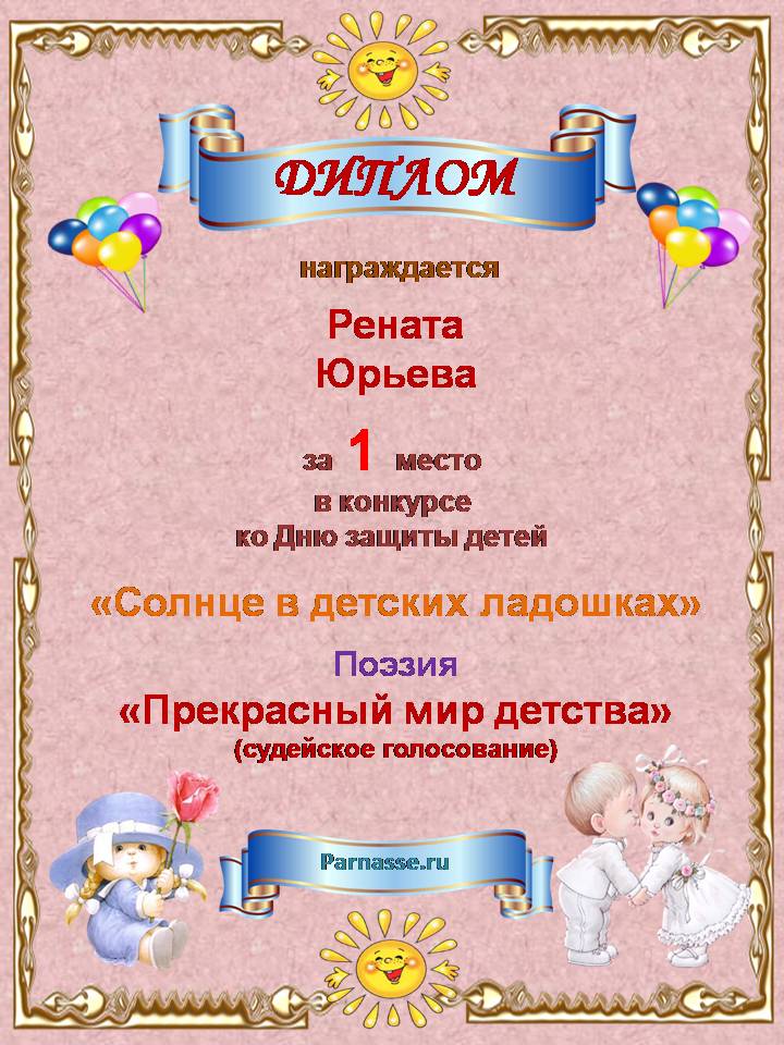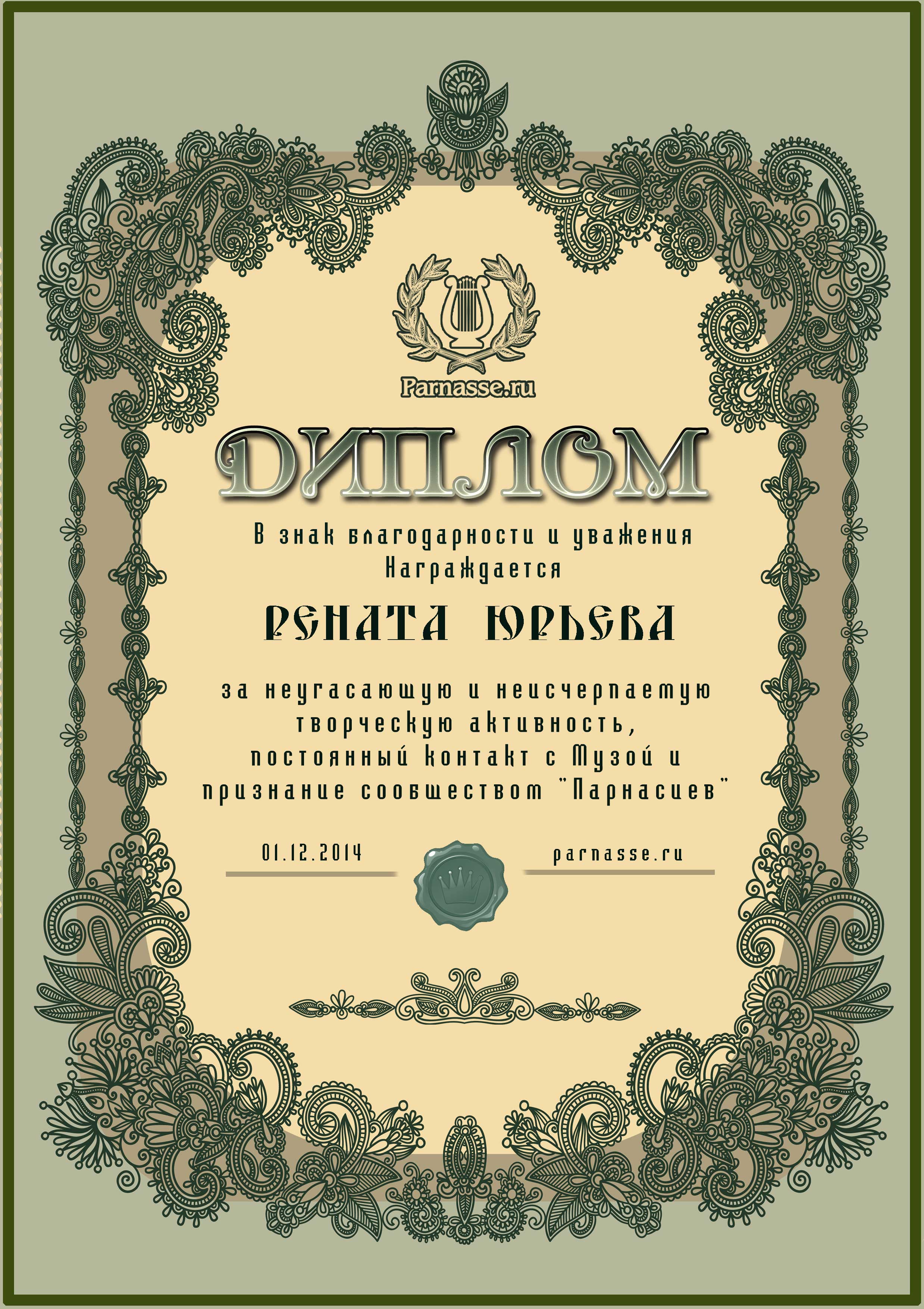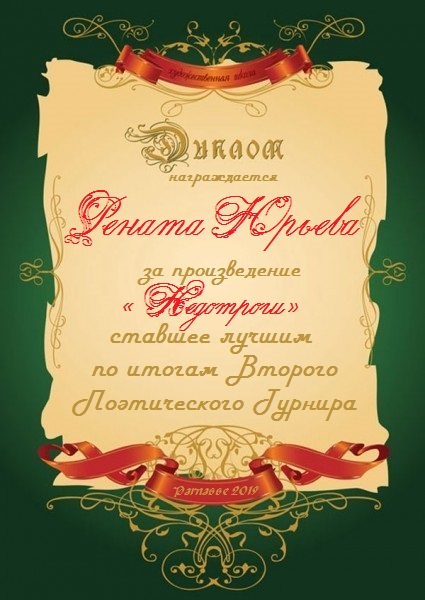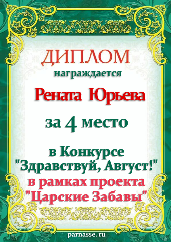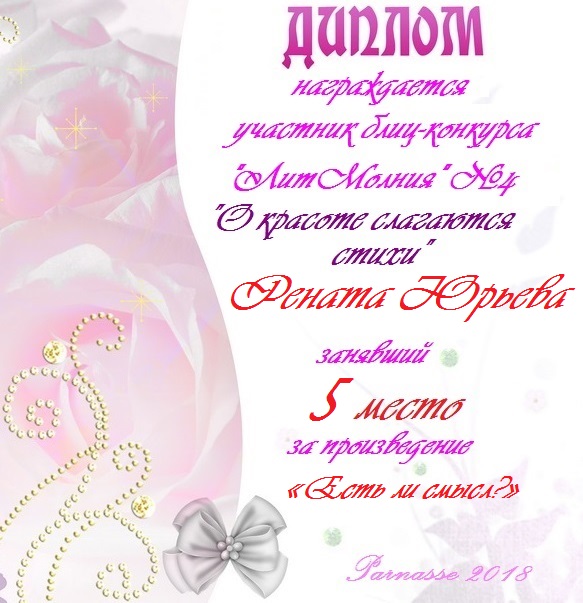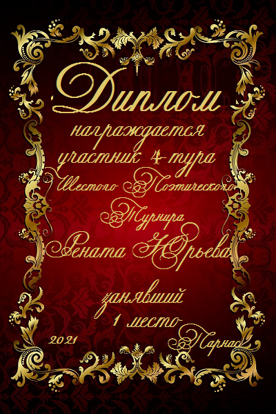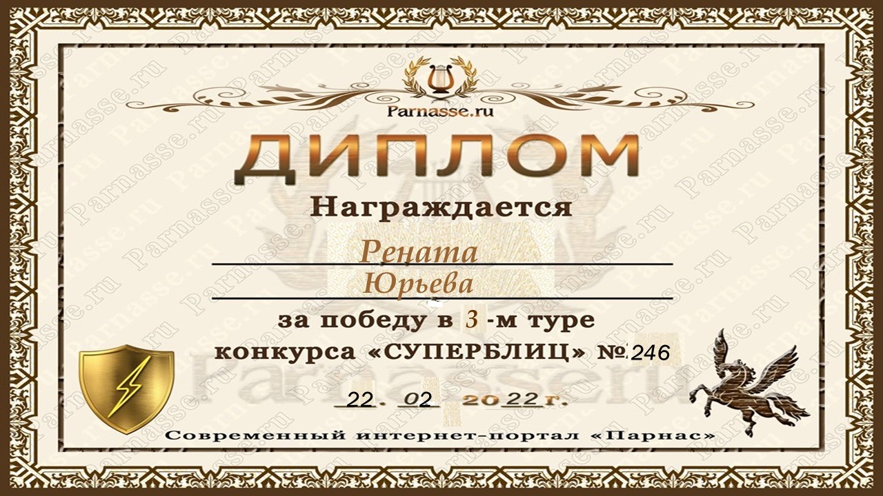 За неугасающую и неисчерпаемую творческую активность, постоянный контакт с Музой и признание сообществом "Парнасцев".От всей души желаем Вам, Рената, здоровья, любви, успехов, благополучия, удачи и творческого вдохновения!