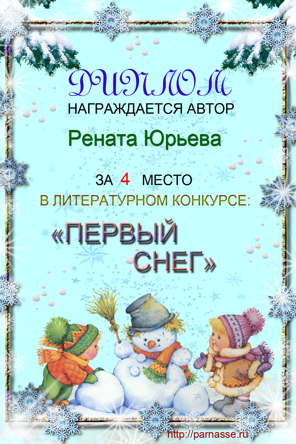 Диплом за 4 место в конкурсе "Первый снег"