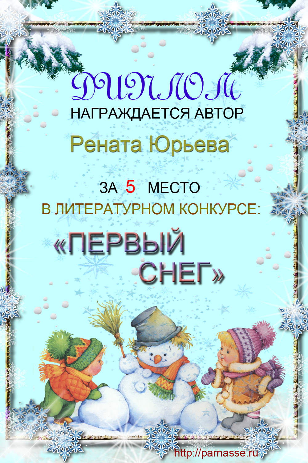 Диплом за 5 место в конкурсе "Первый снег"