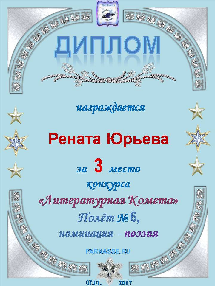 Диплом за 3 место в конкурсе "Литературный снегопад".