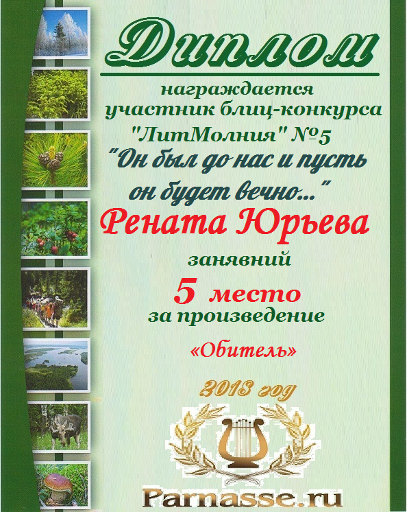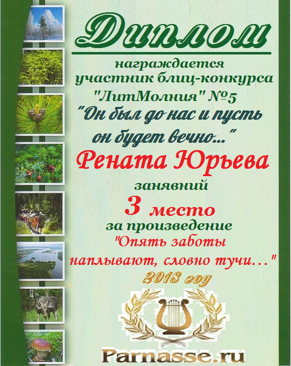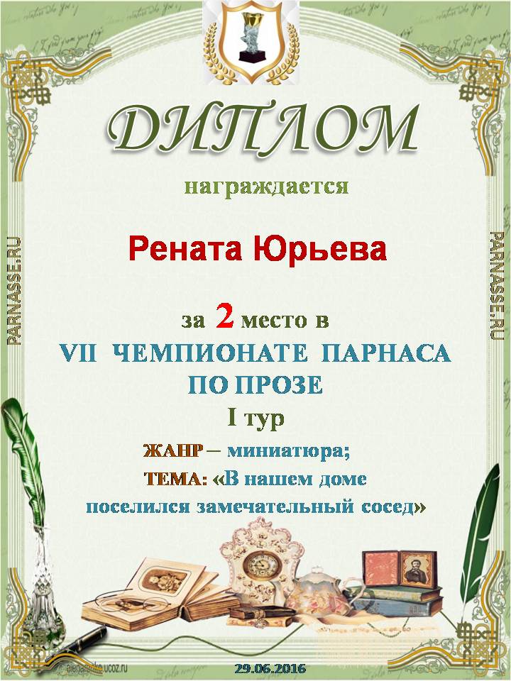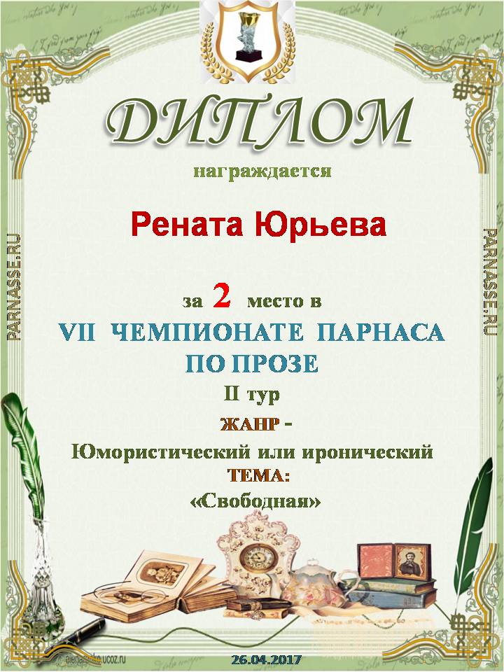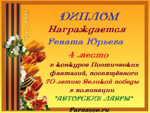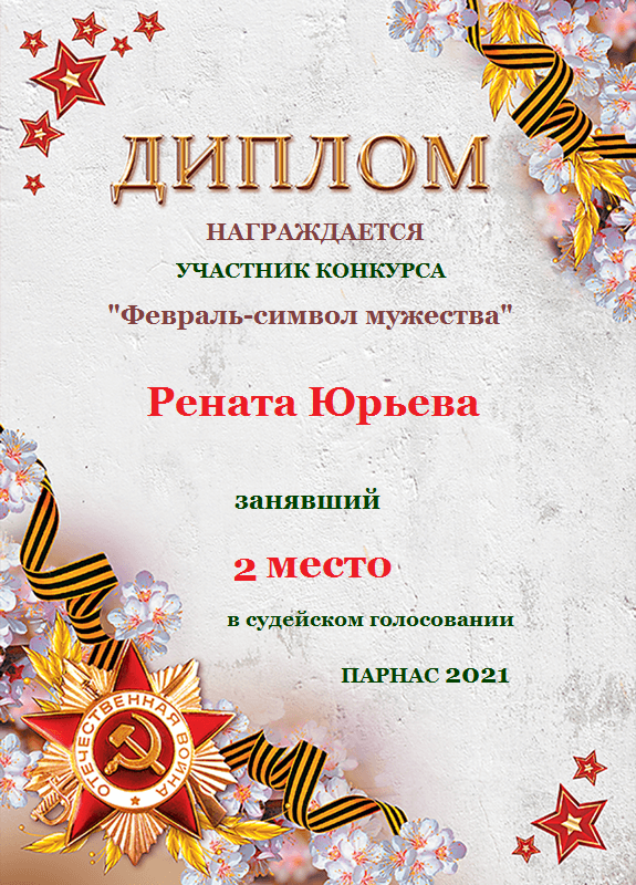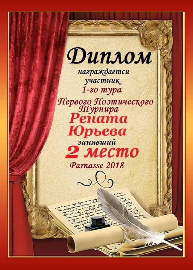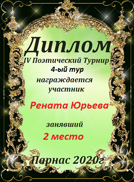 Диплом за 2 место во II Поэтическом Чемпионате Парнаса. I тур . Тема "Нежность весны"