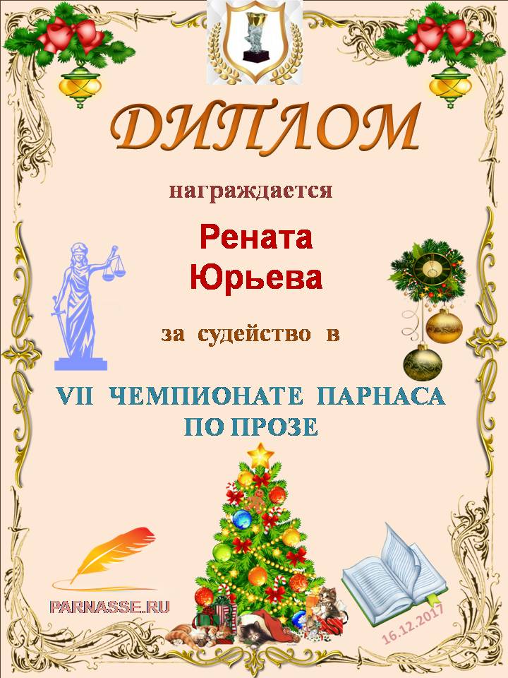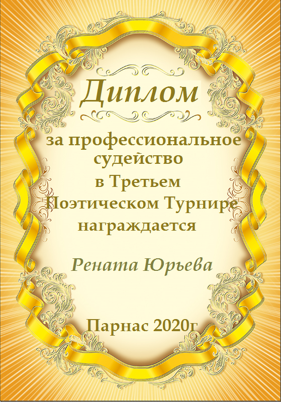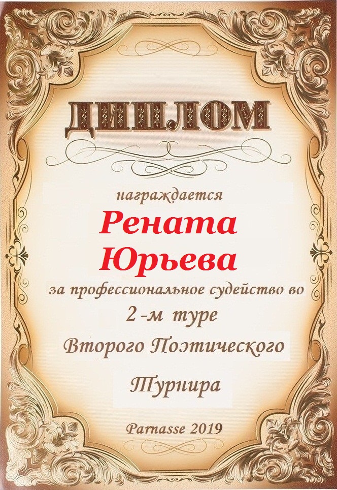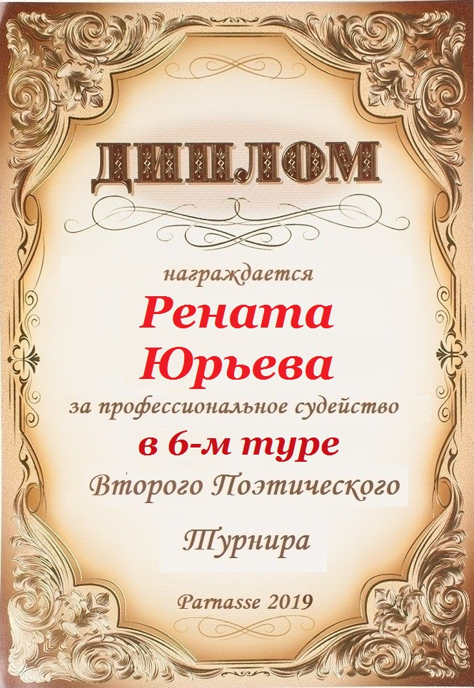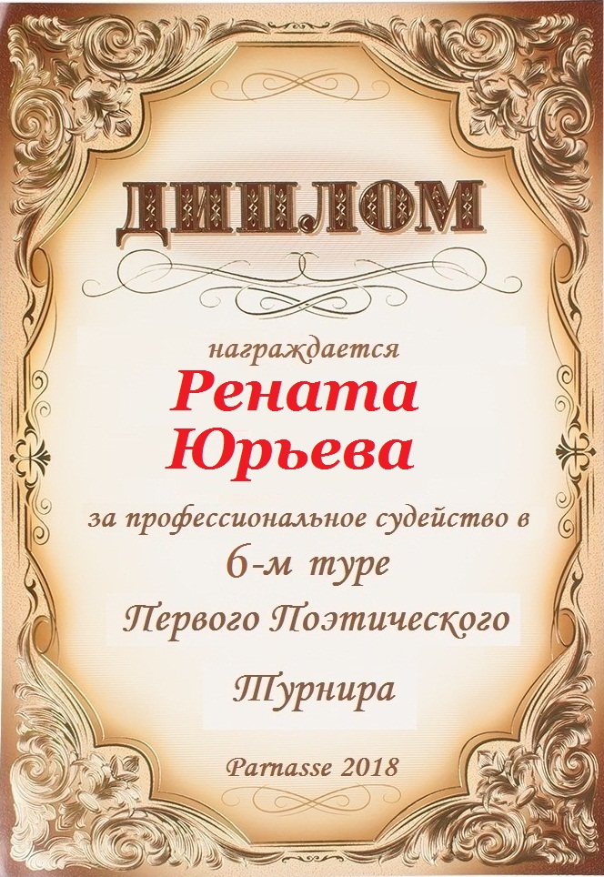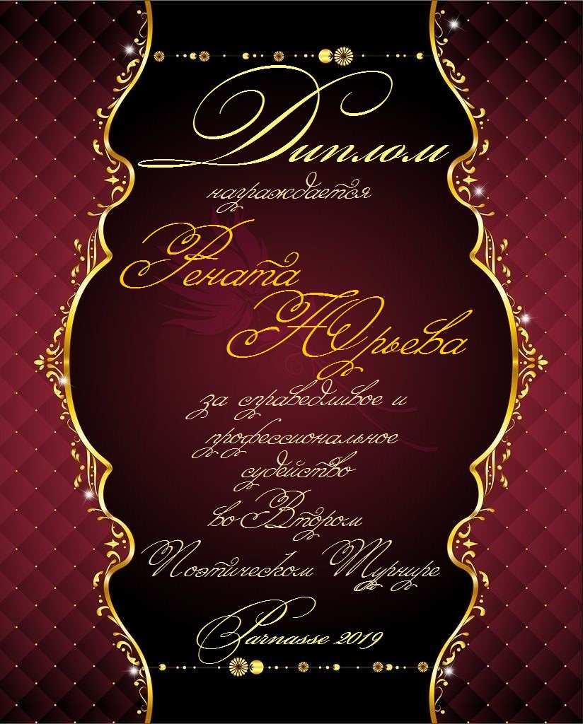 ДИПЛОМ ЗА ПРОФЕССИОНАЛЬНОЕ СУДЕЙСТВО ШЕСТНАДЦАТОГО КОНКУРСА ПОЭТИЧЕСКИХ ДУЭЛЕЙ