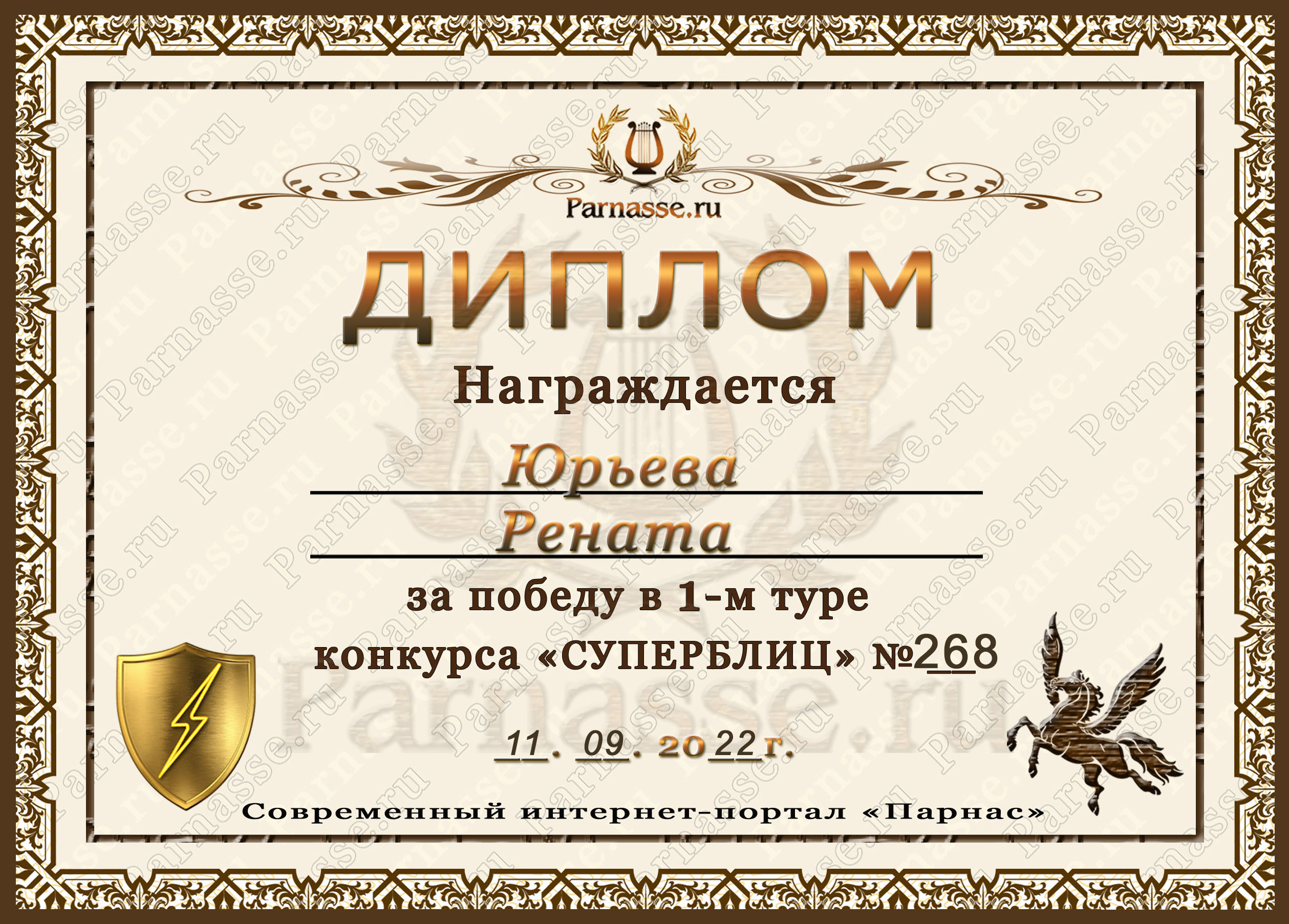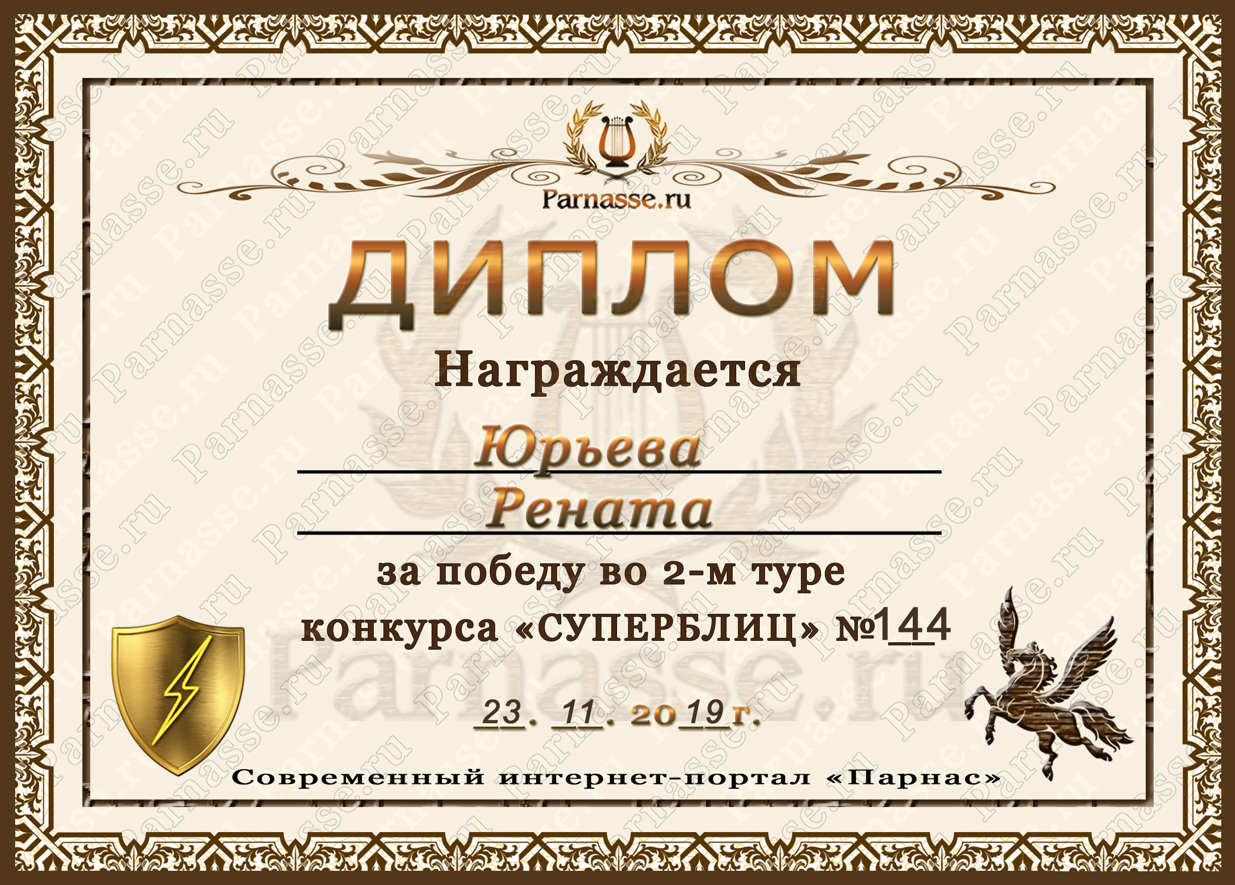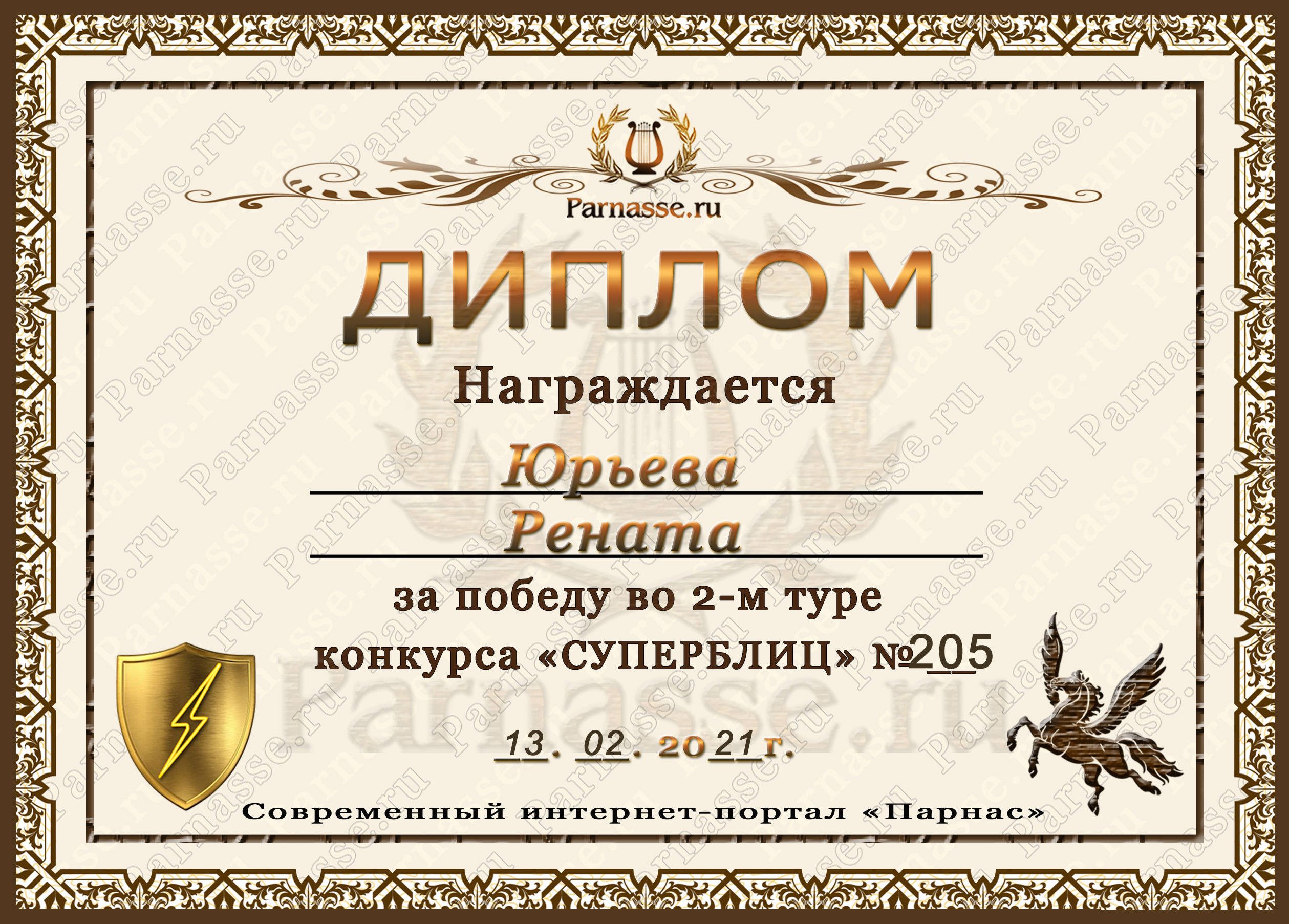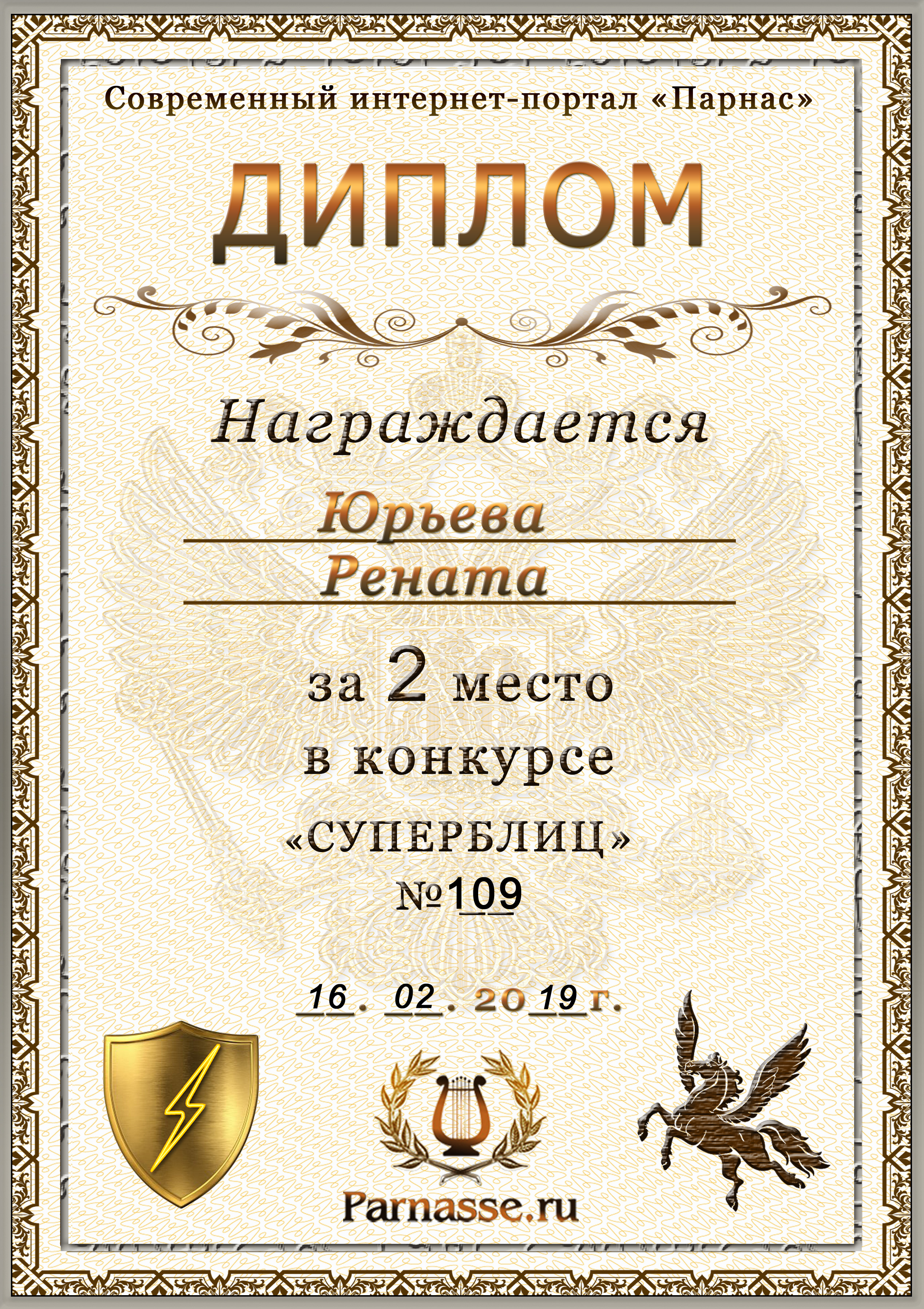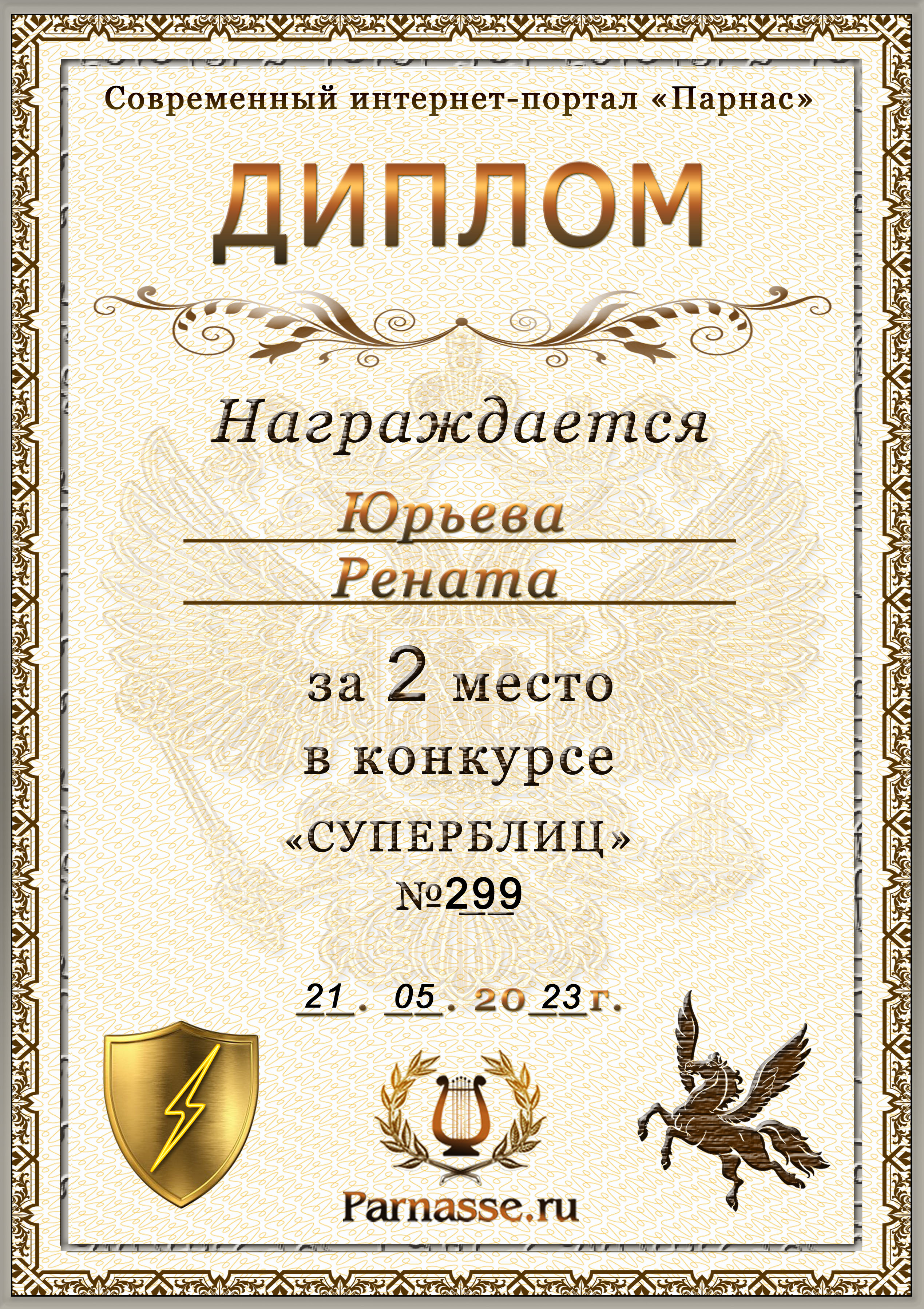 Диплом за победу во 2 туре в конкурсе СУПЕРБЛИЦА № 102! ПОЗДРАВЛЯЮ!