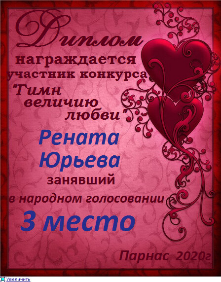 За 3 место в конкурсе"РОМАНС О ВЛЮБЛЁННЫХ"