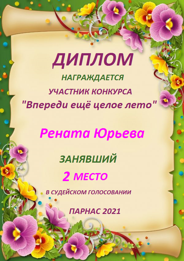 Первое место в судейском голосовании по итогам конкурса "Мне оставило лето на память"