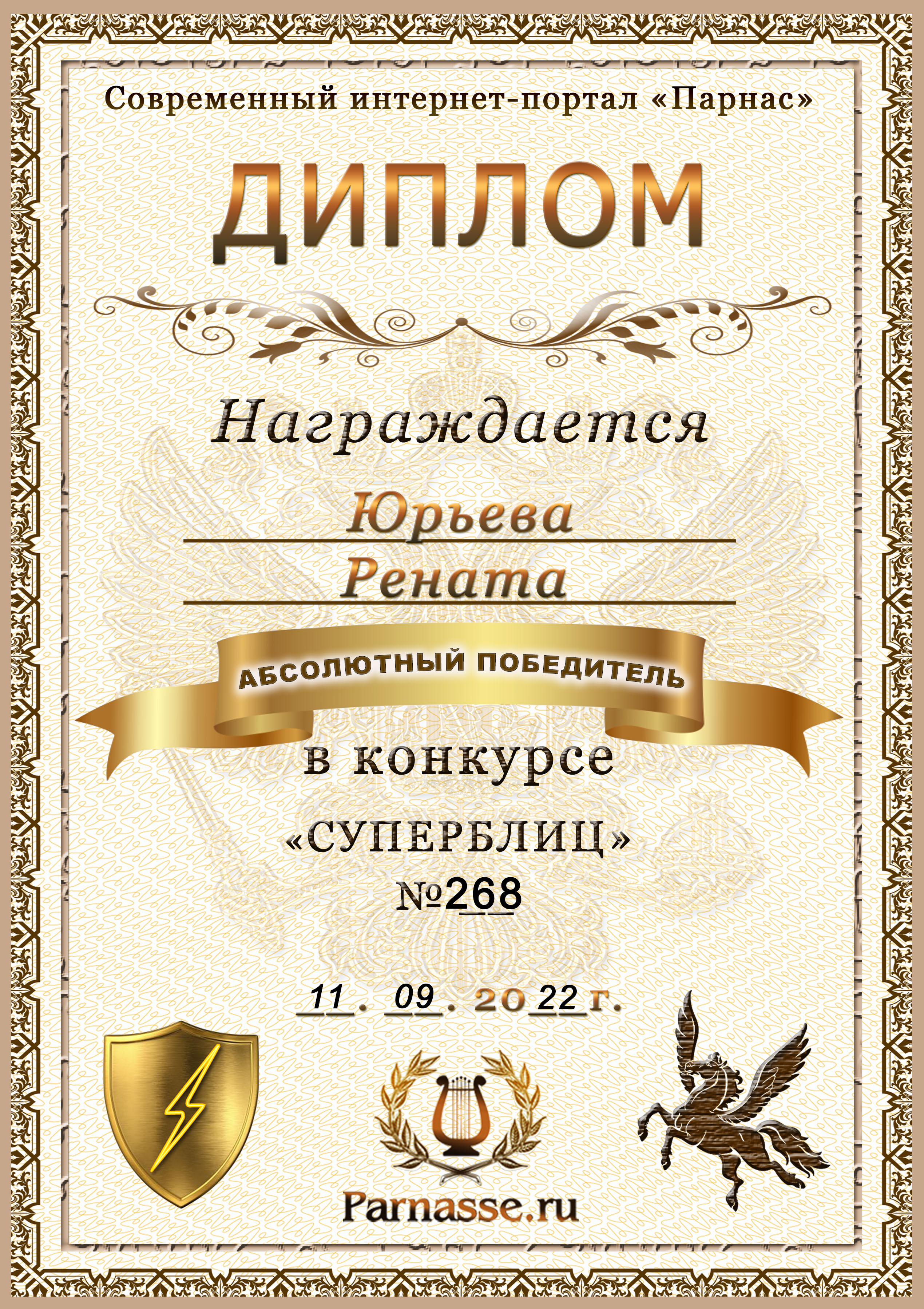 ![]() Золотой орден "Судья Парнаса"