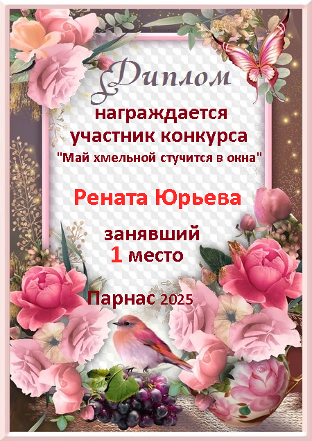 1 место место в судейском голосовании по итогам конкурса "Май хмельной стучится в окна"