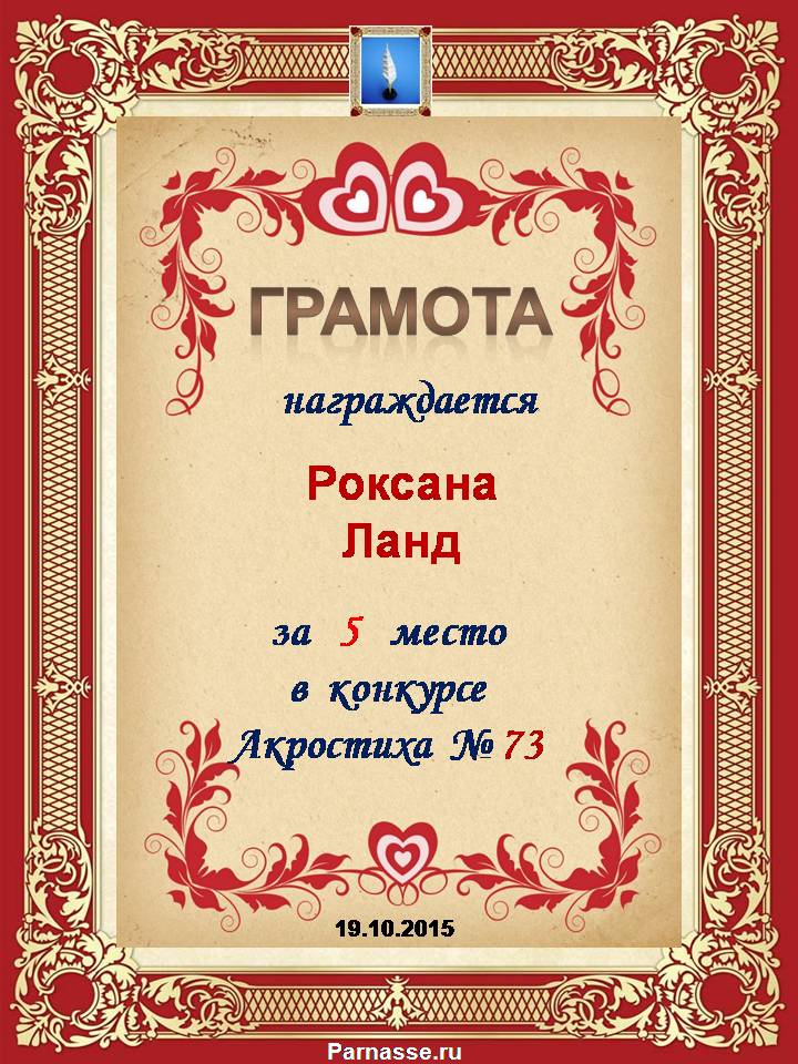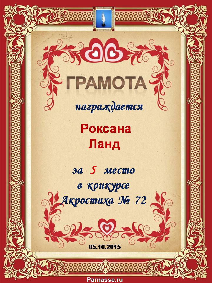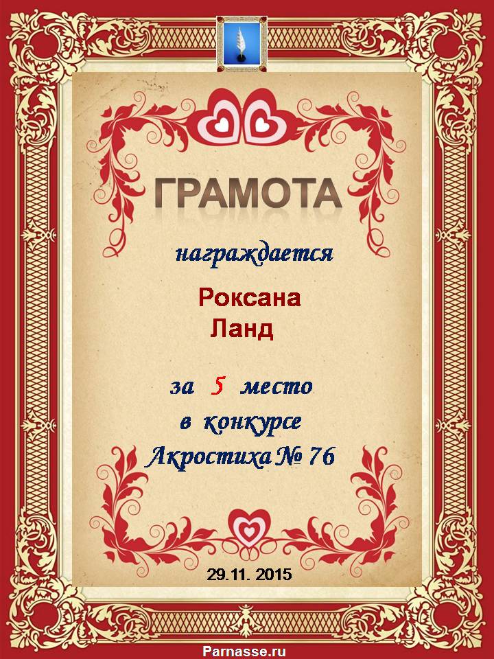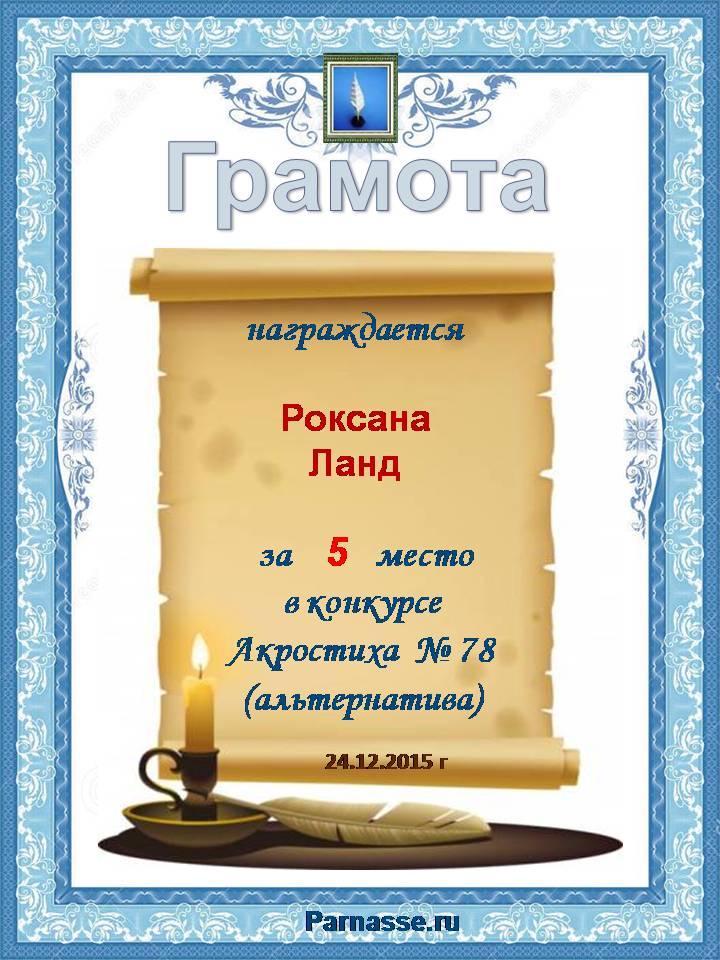 Диплом победителю в конкурсах Акростиха в связи с пятилетием конкурса Акростиха!