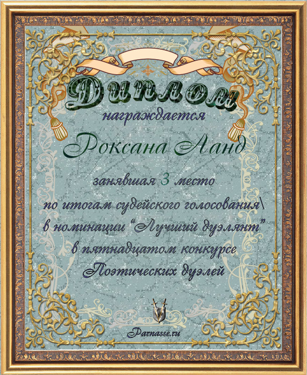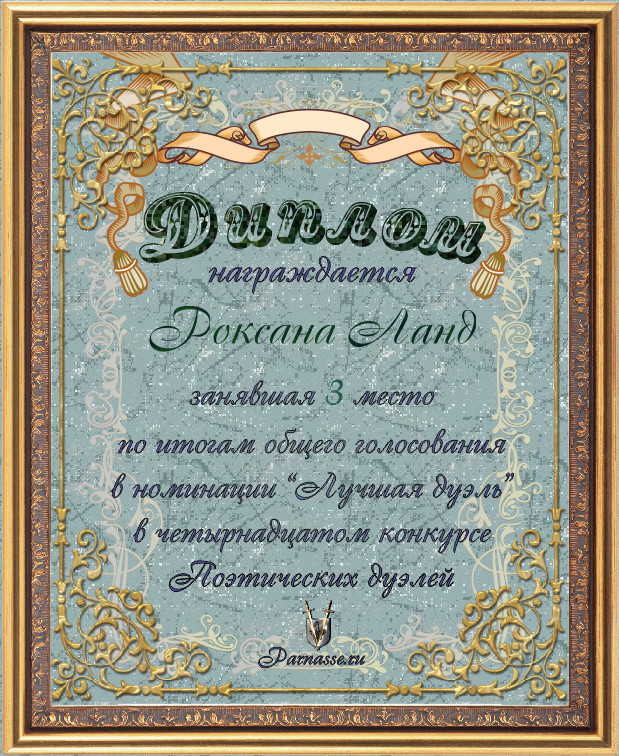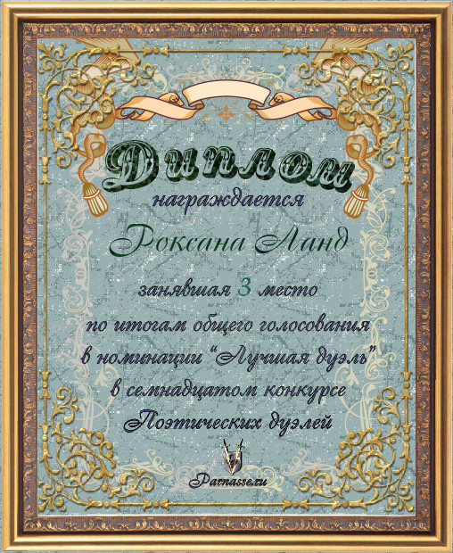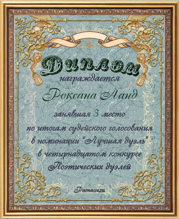 Диплом за 3-е место в номинации "Лучшая дуэль" по итогам судейского голосования в 15ом конкурсе поэтических дуэлей(№ 22.1)