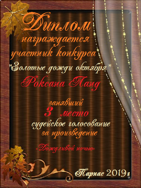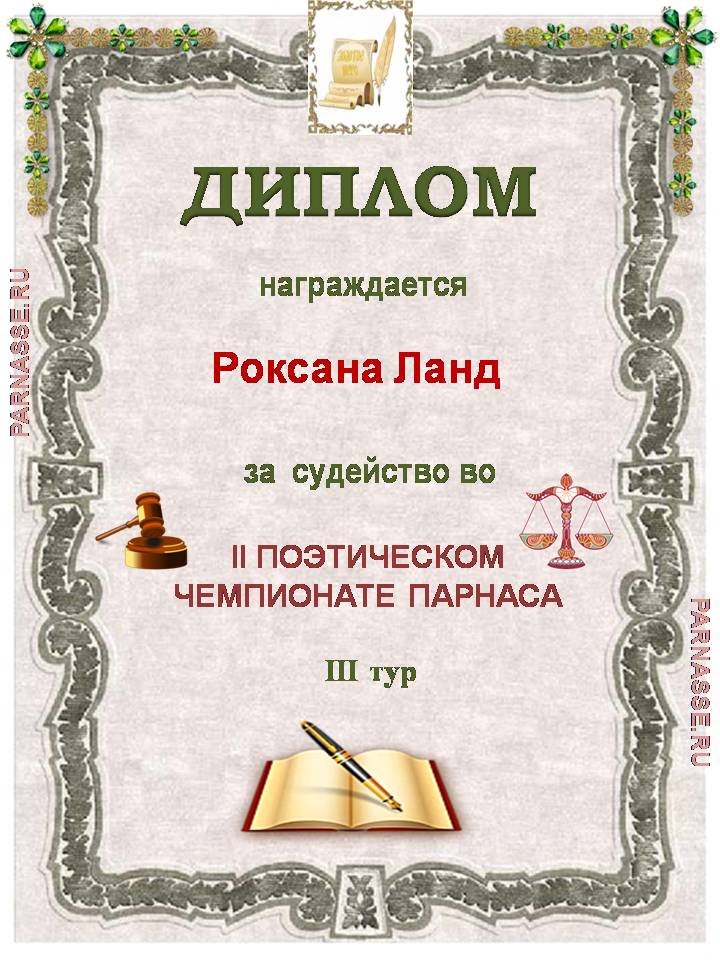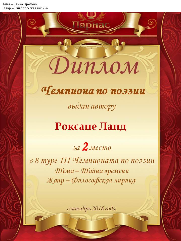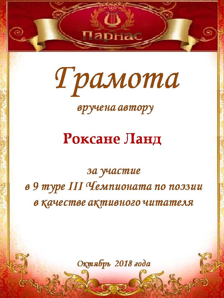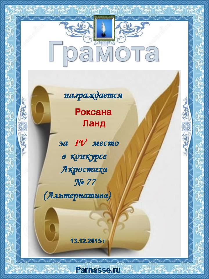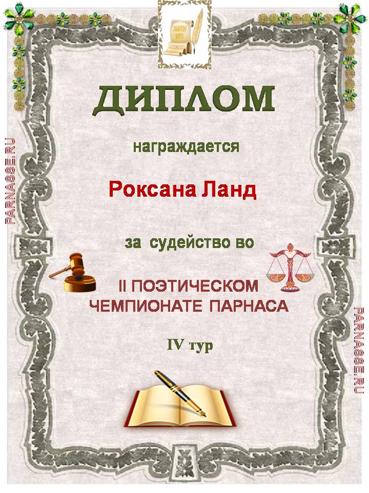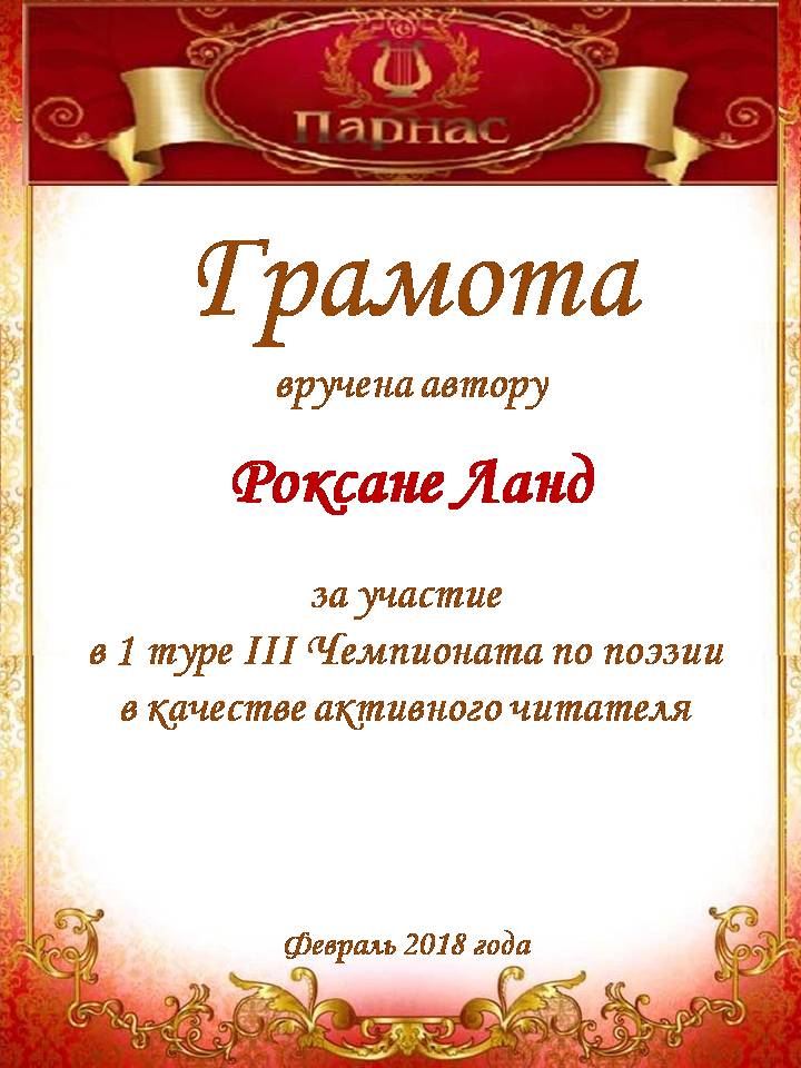 За профессиональное, компетентное, объективное, беспристрастное, квалифицированное, справедливое Главное Судейство II Чемпионата Парнаса по Поэзии! Огромное СПАСИБО, Роксана!
