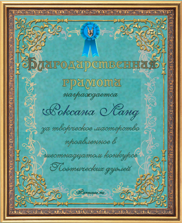 БЛАГОДАРСТВЕННАЯ ГРАМОТА за активное участие в 16м конкурсе ПОЭТИЧЕСКИХ ДУЭЛЕЙ