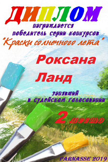 Второе место по итогам серии летних конкурсов " Краски солнечного лета", судейское голосование. Поздравляем с прекрасной победой!