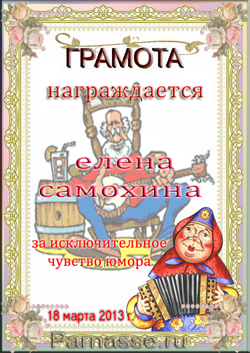 Похвальная грамота за 4 место в конкурсе лимериков № 51+ (23.03.2014 г.)