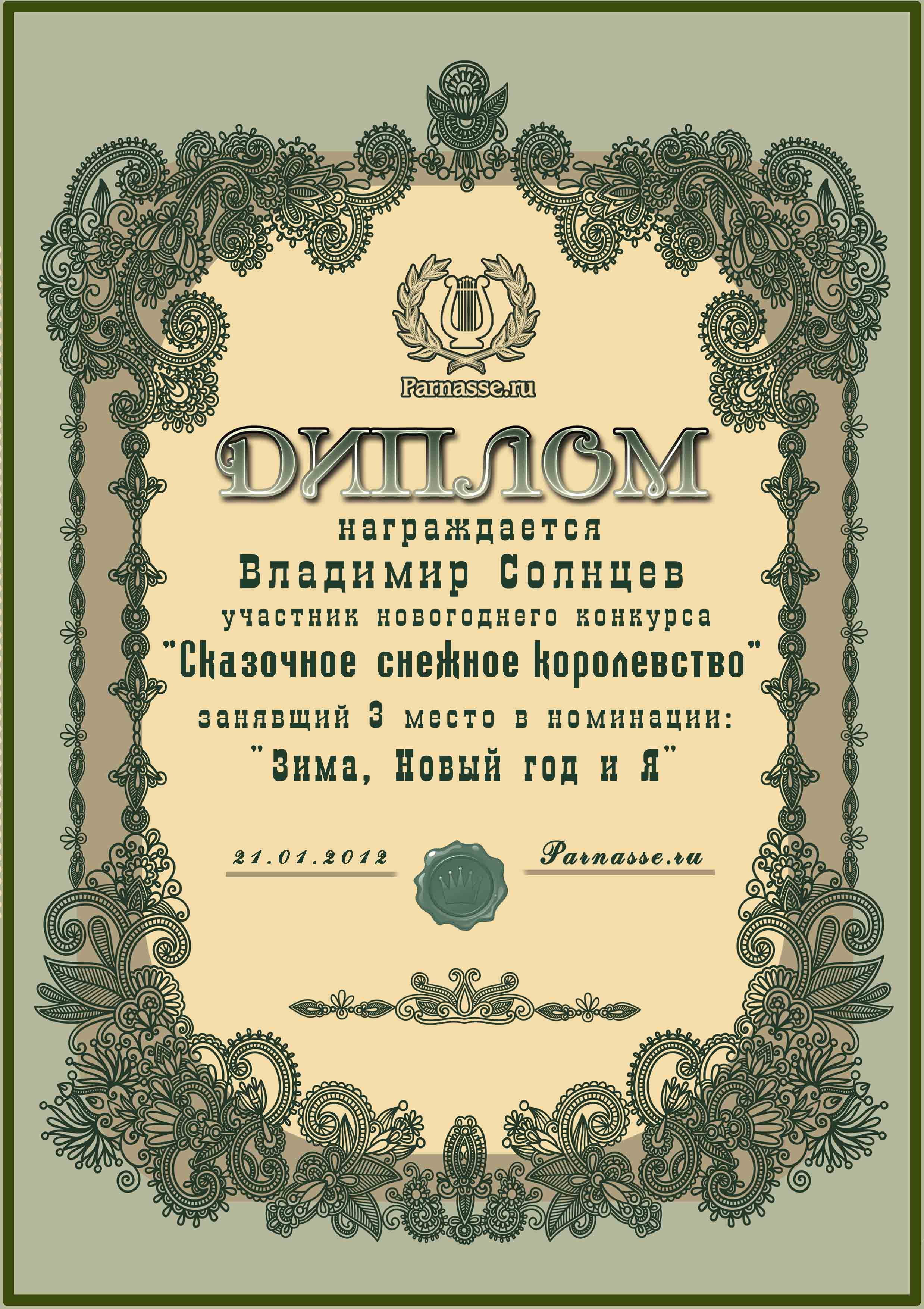 Диплом за 3 место в конкурсе лимериков №9 (29.04.2012.)