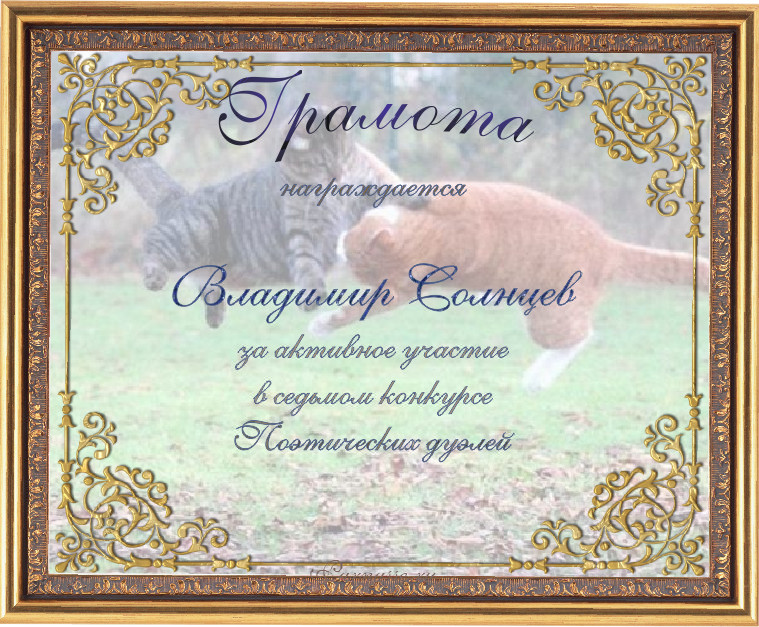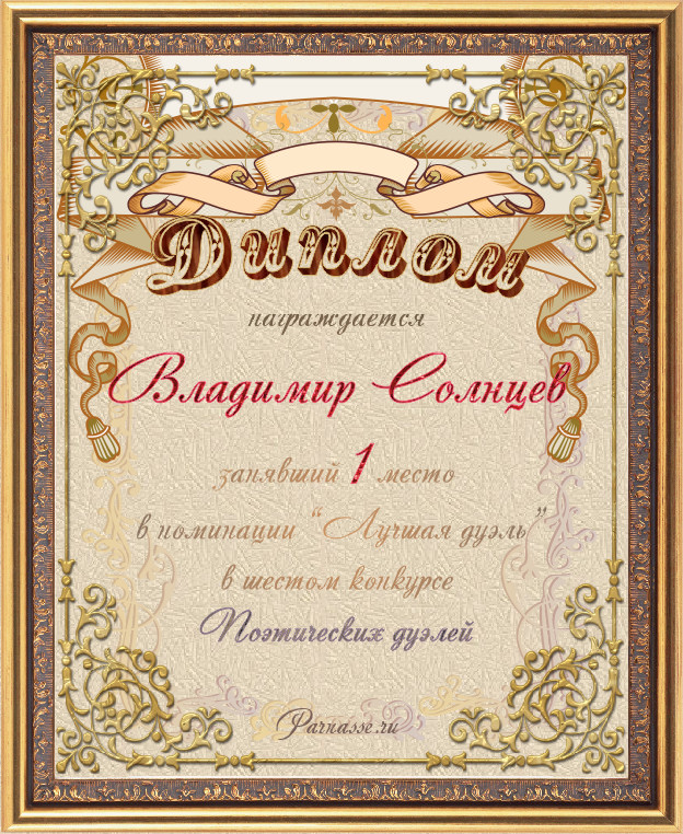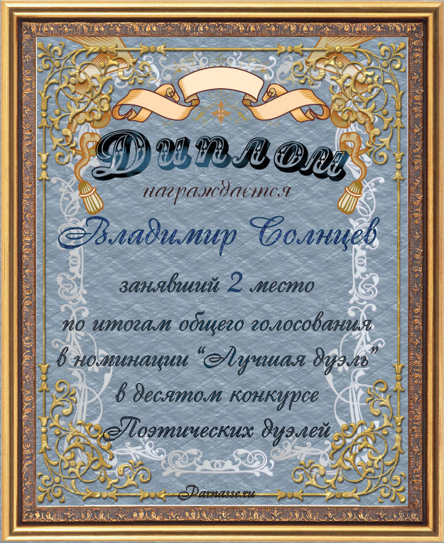 Диплом за 2-е место в номинации "Лучшая дуэль" по итогам общего голосования в десятом конкурсе поэтических дуэлей(№ 4.1)