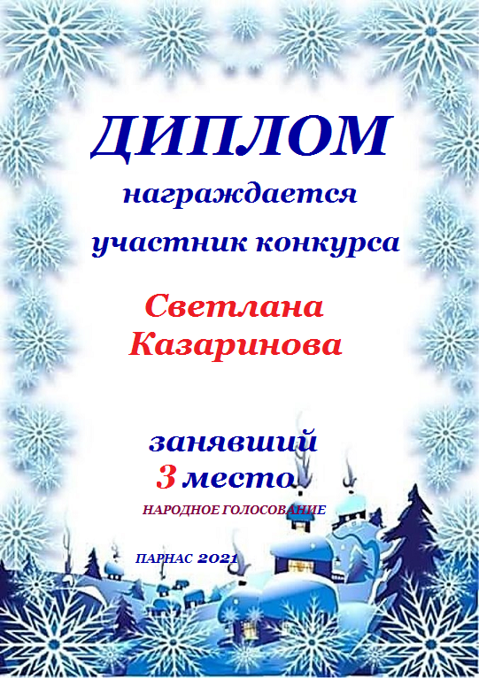 Подарок/пожелание от: Анна Гирик Время: 20 января 2021 в 12:53 Пожелание: Спасибо вам, мои дорогие друзья, за тёплые слова и добрые пожелания! Рада была встрече с вами под красивой парнасской ёлочкой. До встречи через год!!! Счастливого Вам наступившего года, любви, добра, надежды, веры, Светлых мгновений, солнечных дней! Ну и, конечно же, здоровья На много-много лет вперед!!! |