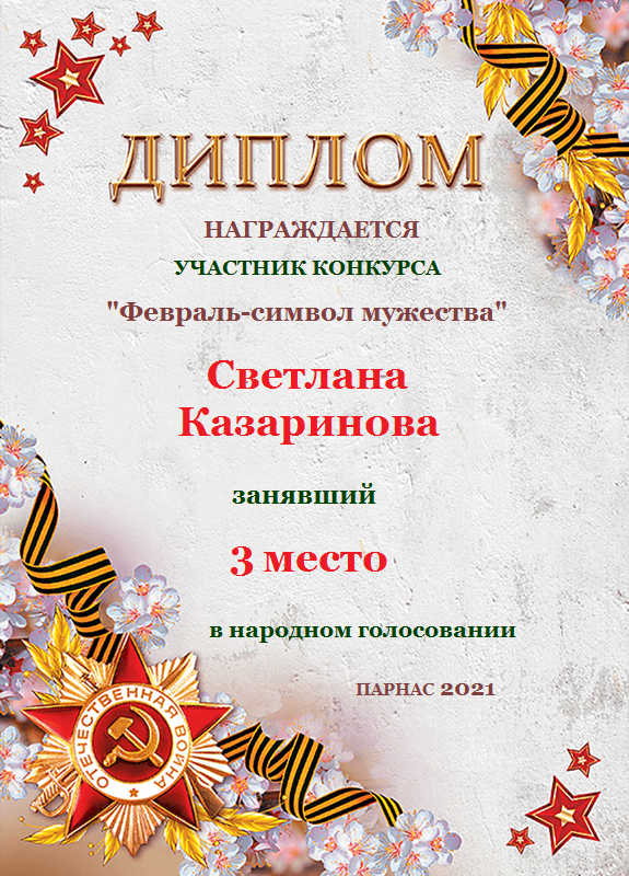 Подарок/пожелание от: Валентина Владова Время: 20 января 2021 в 11:38 Пожелание: Дорогие мои друзья! Игра заканчивается. Огромное спасибо Вам за общение! Будьте счастливы и любимы! Мира - вашему дому! Счастья - вашему сердцу! Мечтам - поскорее сбыться! Желаниям - осуществиться! |