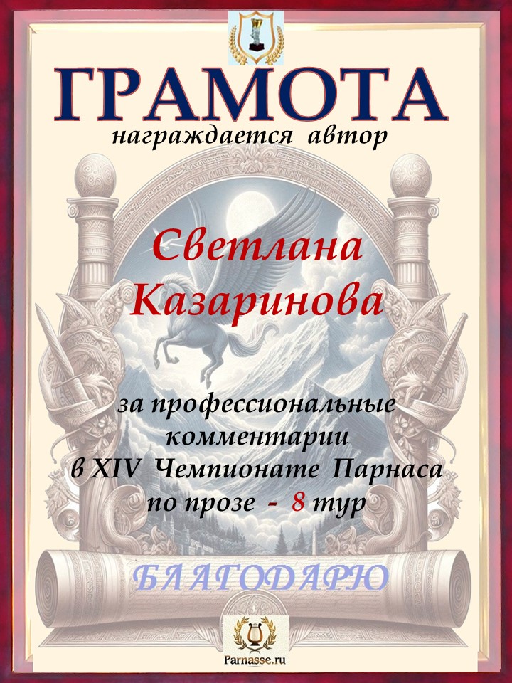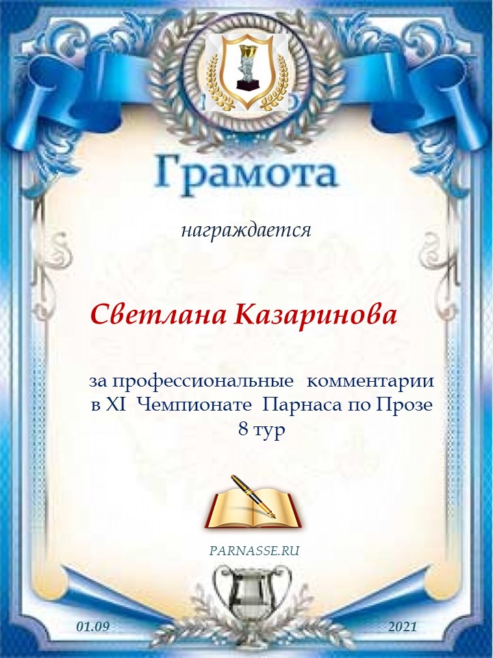Спасибо за профессиональные комментарии в 8 туре XIII Чемпионата Парнаса по прозе!