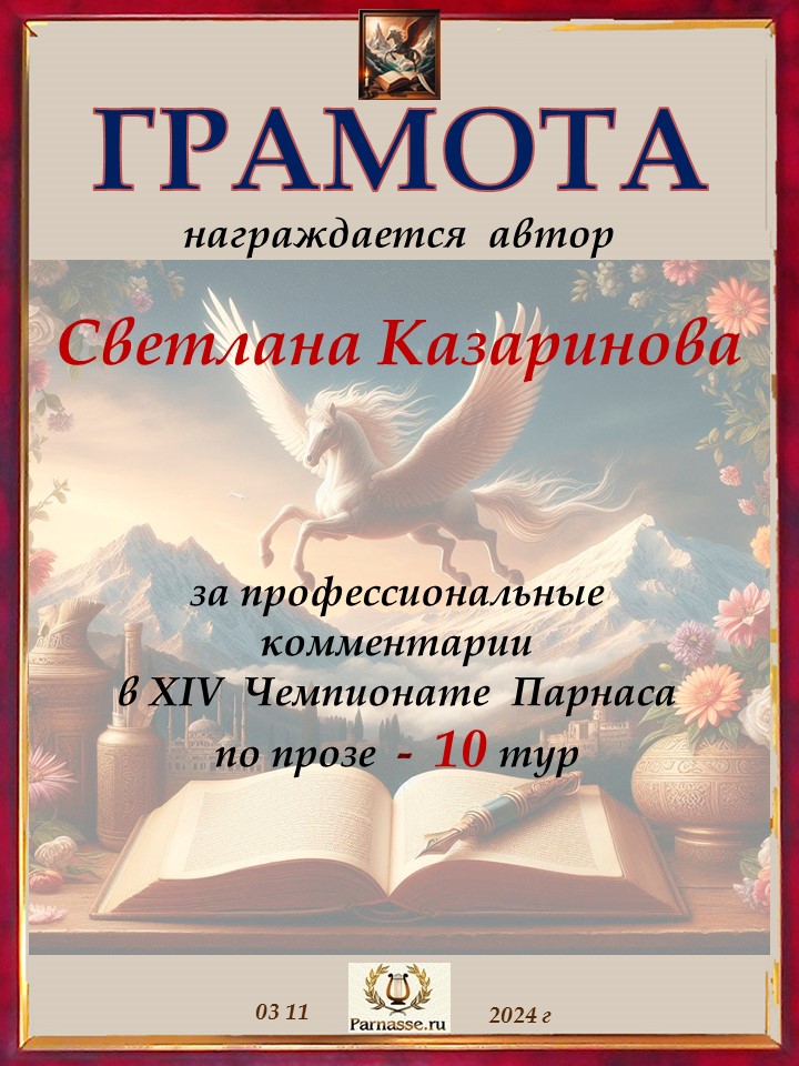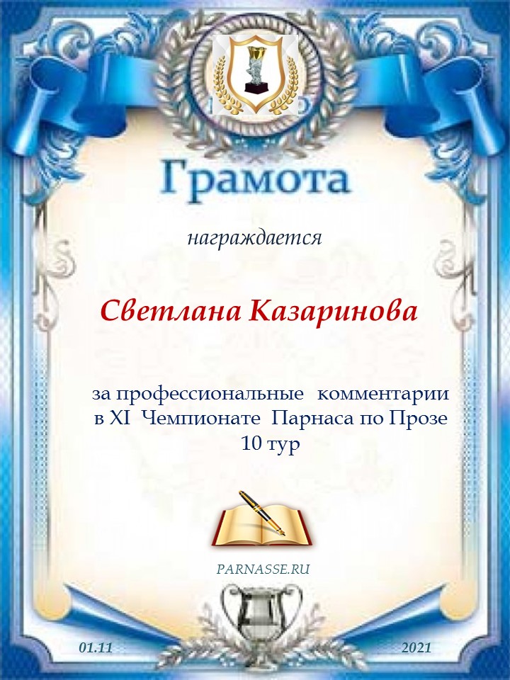 Благодарю за профессиональные комментарии в 10 туре XI Чемпионата Парнаса по Прозе!