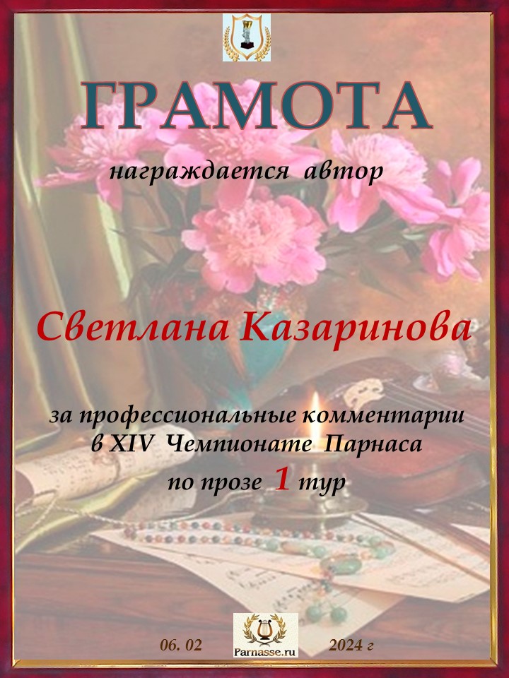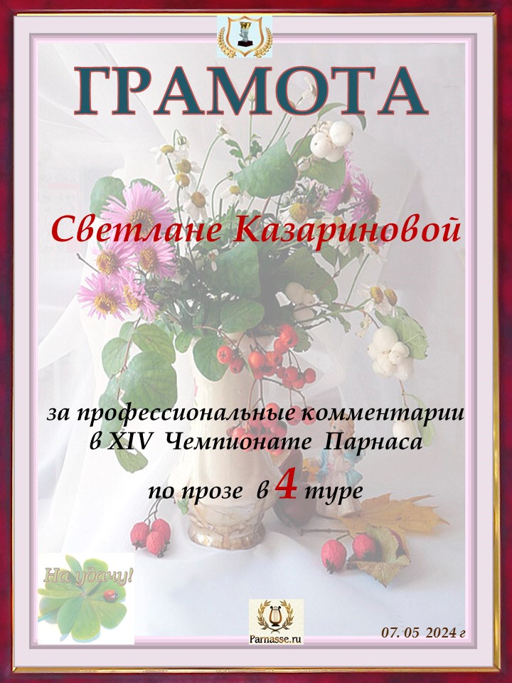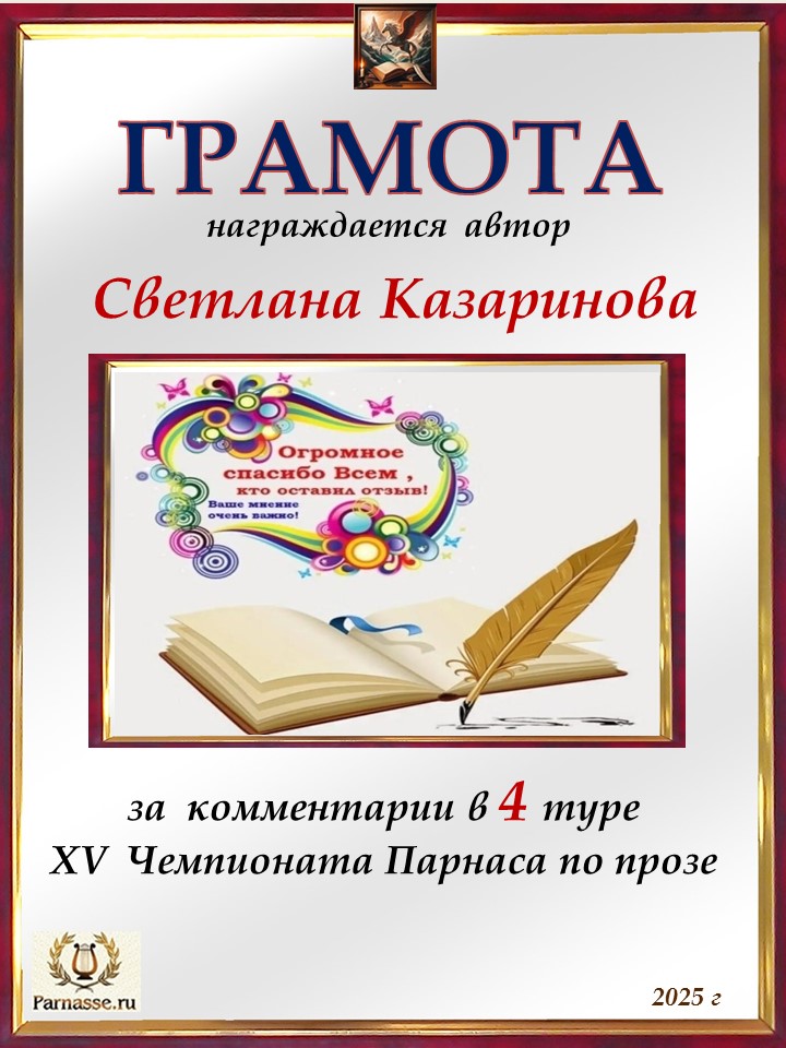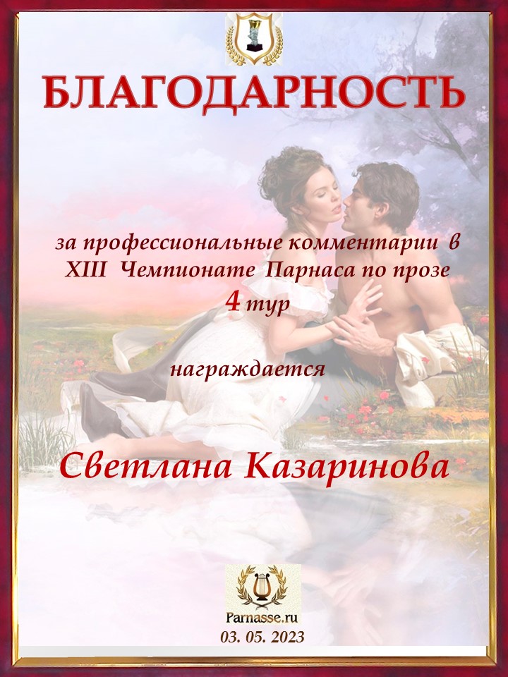 Спасибо за профессиональные комментарии в 4 туре XIII Чемпионата Парнаса по прозе!