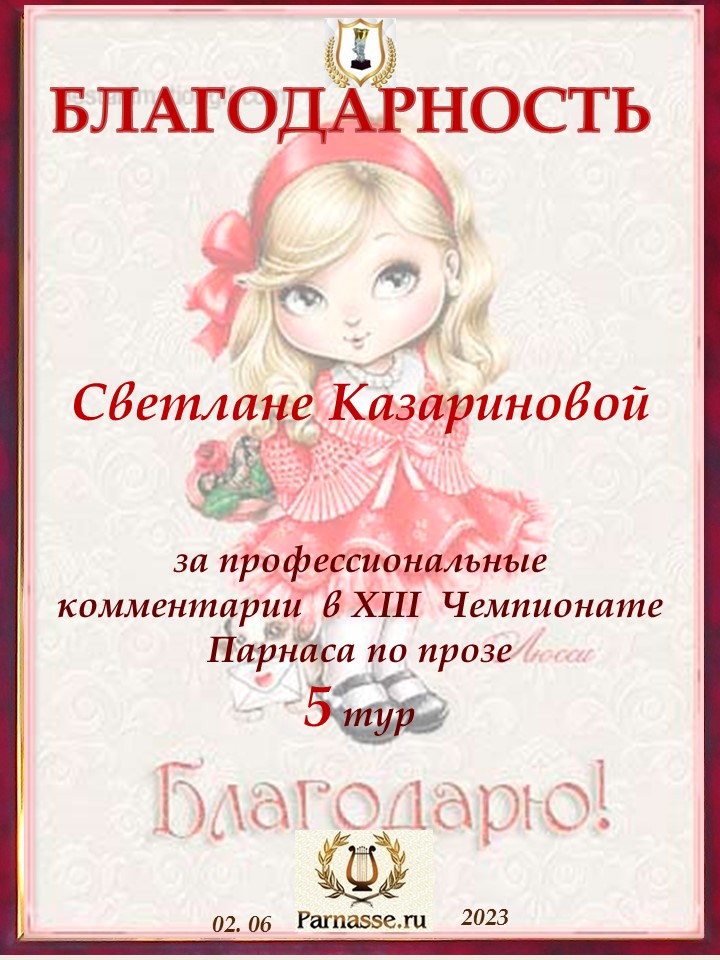 Спасибо за профессиональные комментарии в 5 туре XIII Чемпионата Парнаса по прозе!