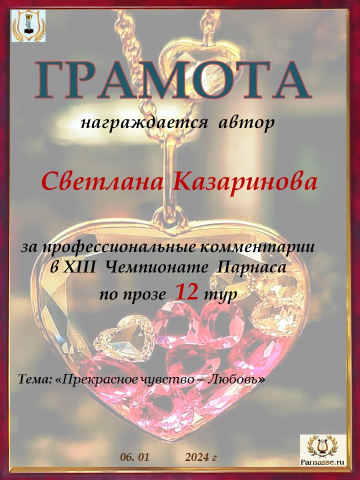 Спасибо за профессиональные комментарии в 12 туре XIII Чемпионата Парнаса по прозе!
