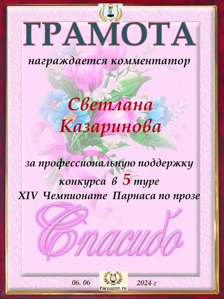 Спасибо за профессиональные комментарии в 6 туре XIV Чемпионата Парнаса по прозе!