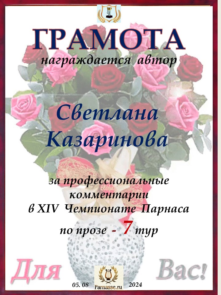 Спасибо за профессиональные комментарии в 7 туре XIII Чемпионата Парнаса по прозе!