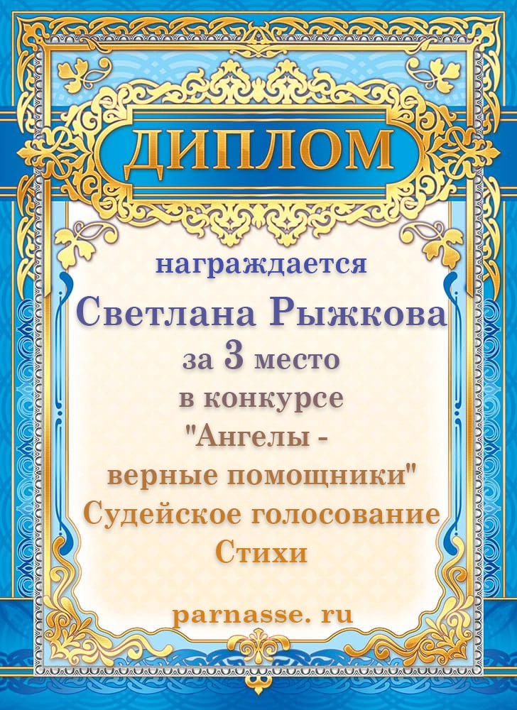 3 место в конкурсе "Ангелы -верные помощники". Судейское голосование. Стихи