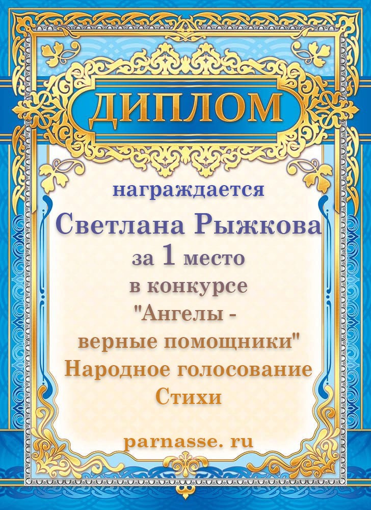 1 место в конкурсе "Ангелы -верные помощники". Народное голосование. Стихи