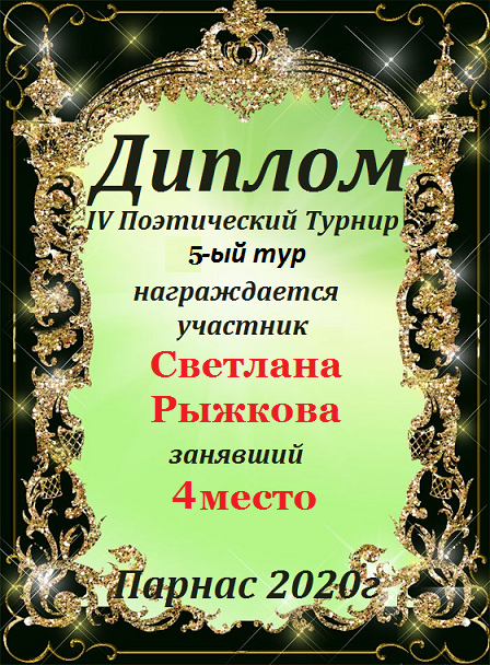 ![]() Медаль за 4-е место «Четвёртого Поэтического Турнира»