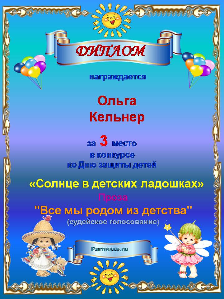 За третье место в конкурсе, посвященном Дню защиты детей. Судейское голосование. Прозаическая Номинация "Все мы родом из детства". Произведение "школьное сочинение". Поздравляем с красивой победой!